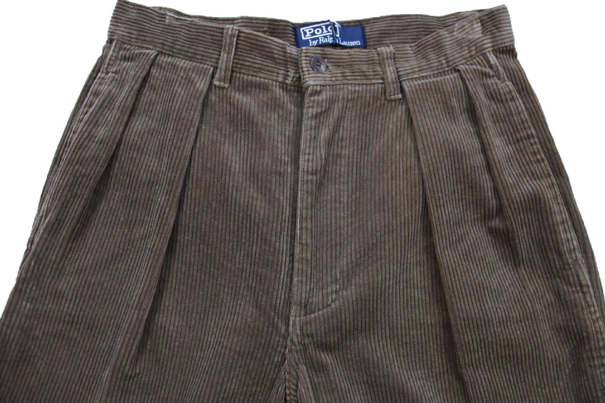 90s ポロ ラルフローレン ツータック コットン 太畝 コーデュロイパンツ ブラウン W28 L30