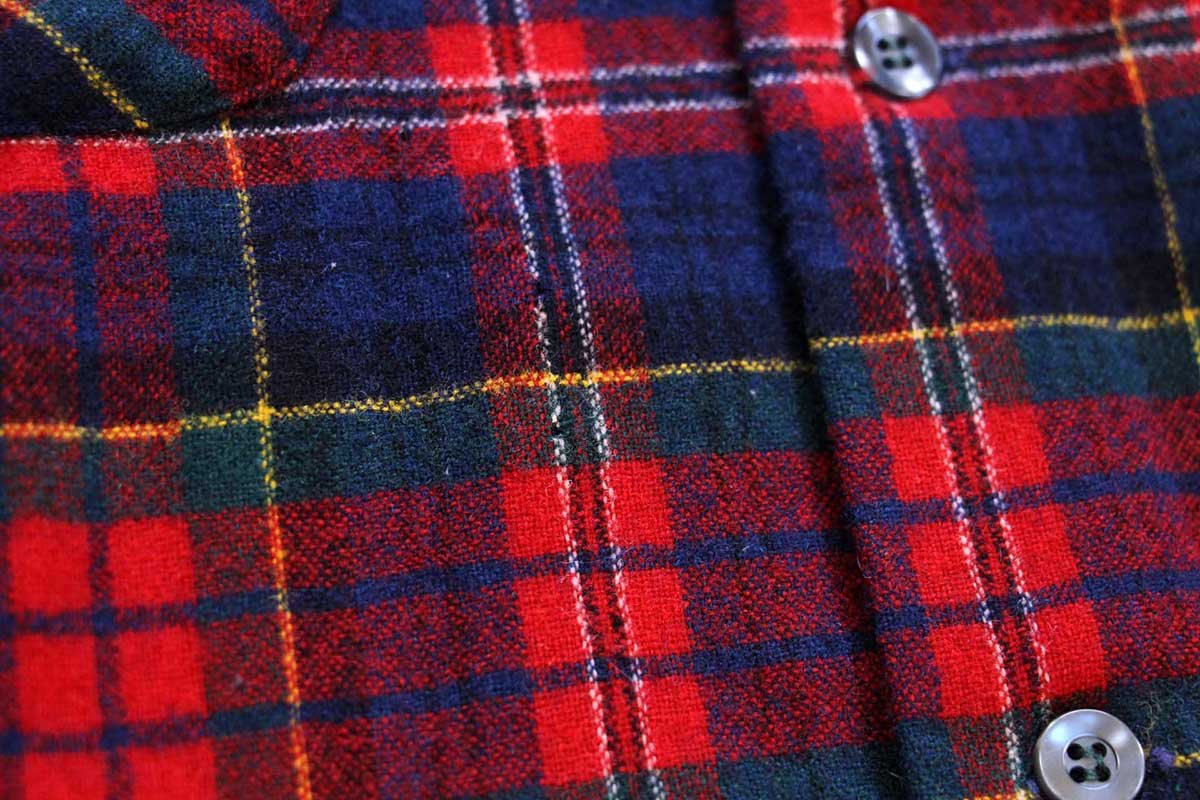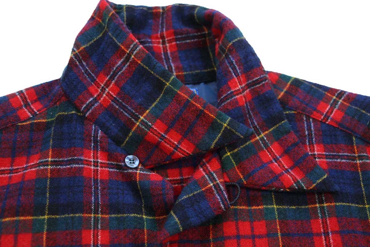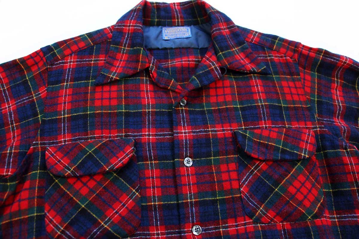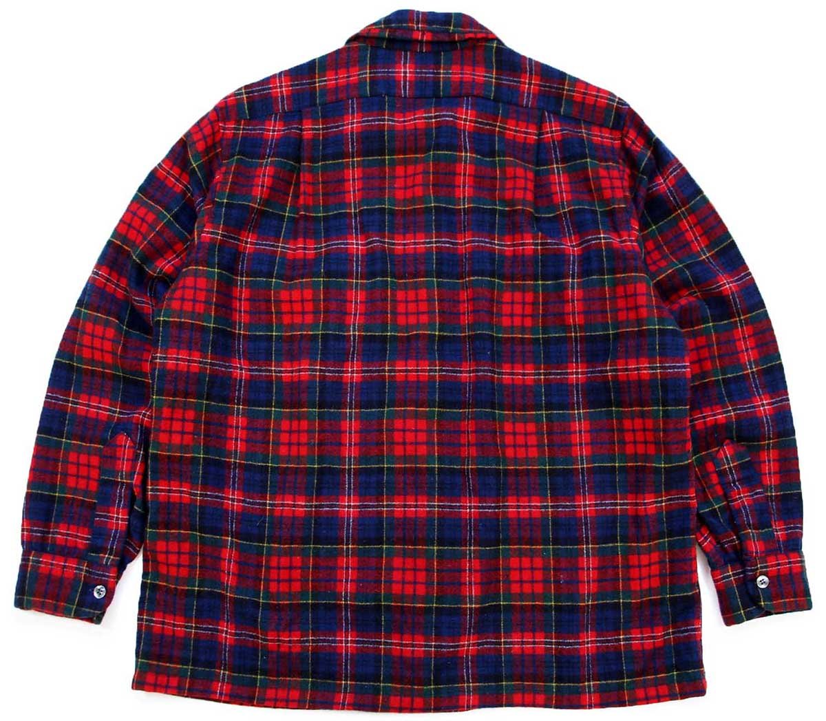 70s USA製 PENDLETONペンドルトン タータンチェック オープンカラー ウールシャツ L