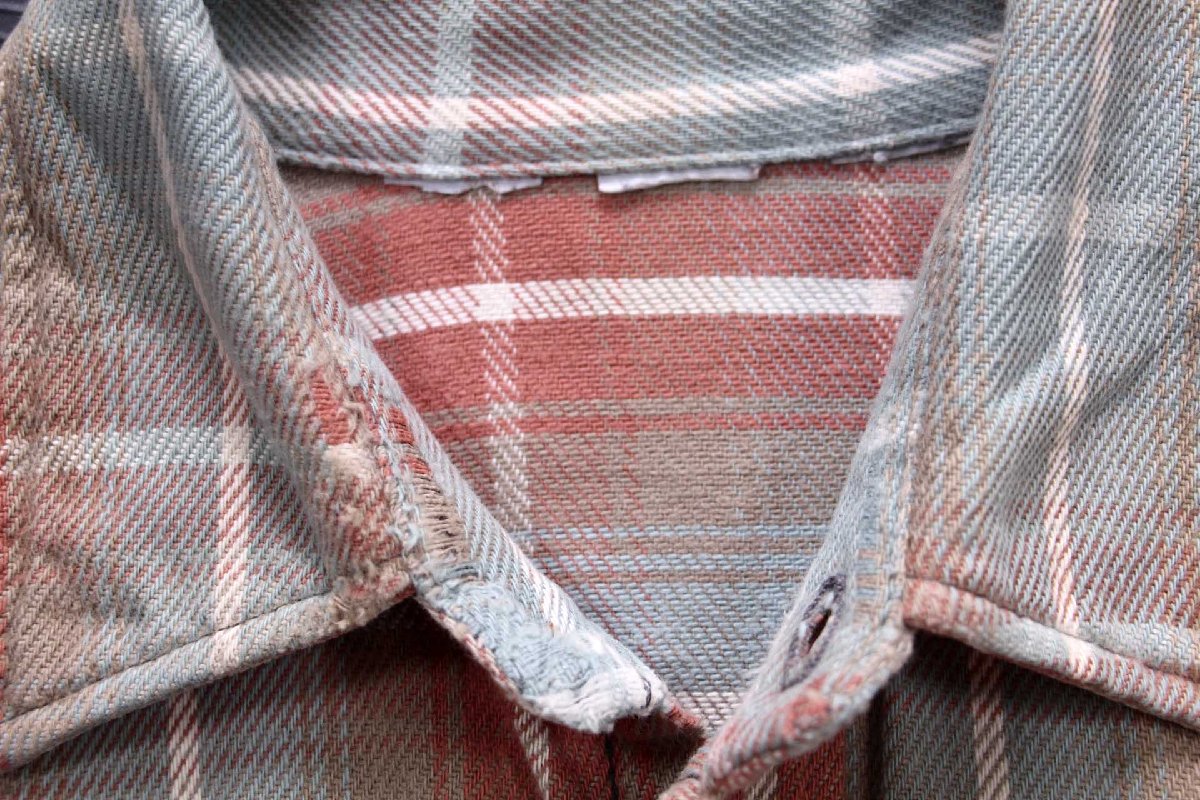 コンディション:着用感があり、喉元裏に擦れ、右胸下に縦に8cm程度のリペアがあります。致命的なダメージや酷い汚れはなく、古着慣れされている方なら問題なく着用いただける程度です。