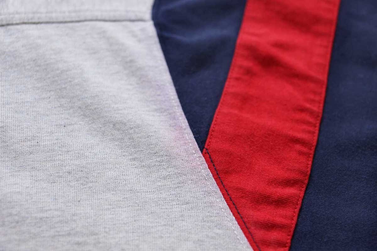 フロントにアップリケ&星条旗の刺繍あり、肩は生地が二重になっています。