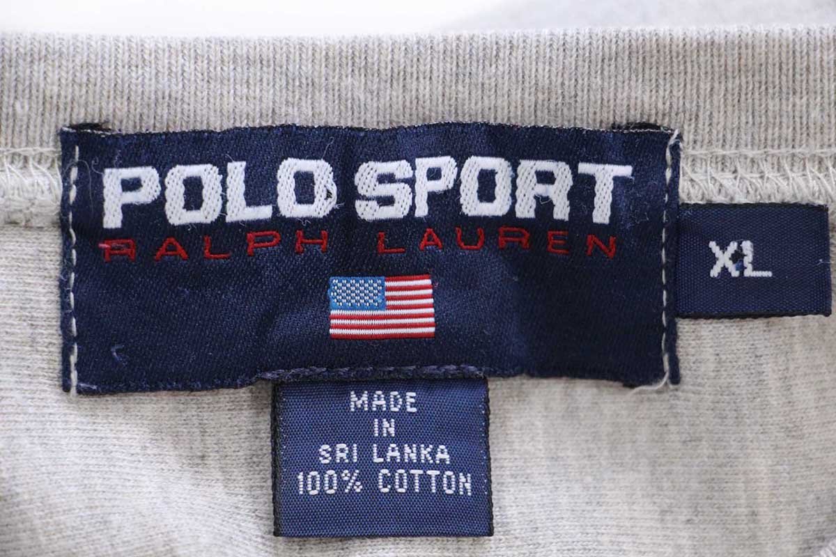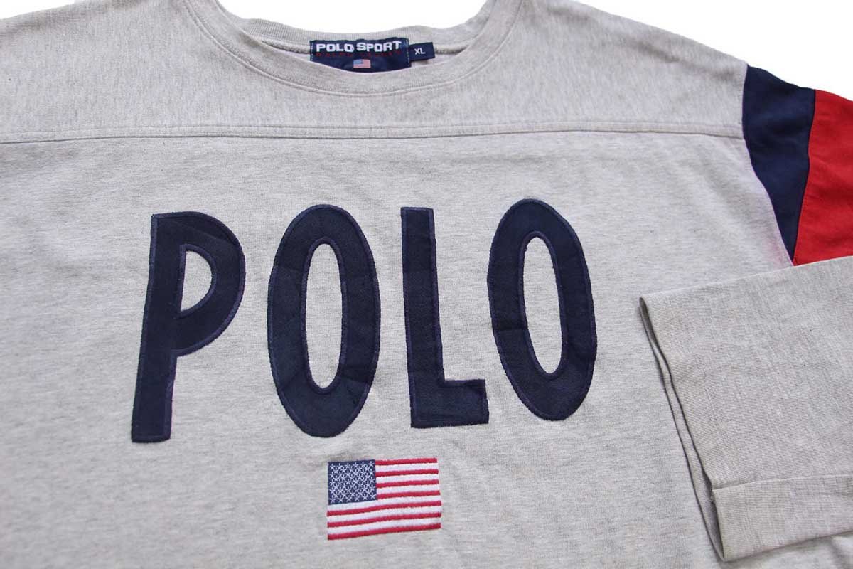 90s POLO SPORT ポロ スポーツ ラルフローレン アップリケ 星条旗 刺繍 コットン アスレチックTシャツ 杢グレー XL
