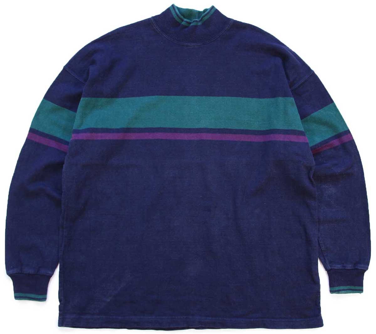 80s USA製 L.L.Bean モックネック ヘビー コットン スウェット 紺 XL