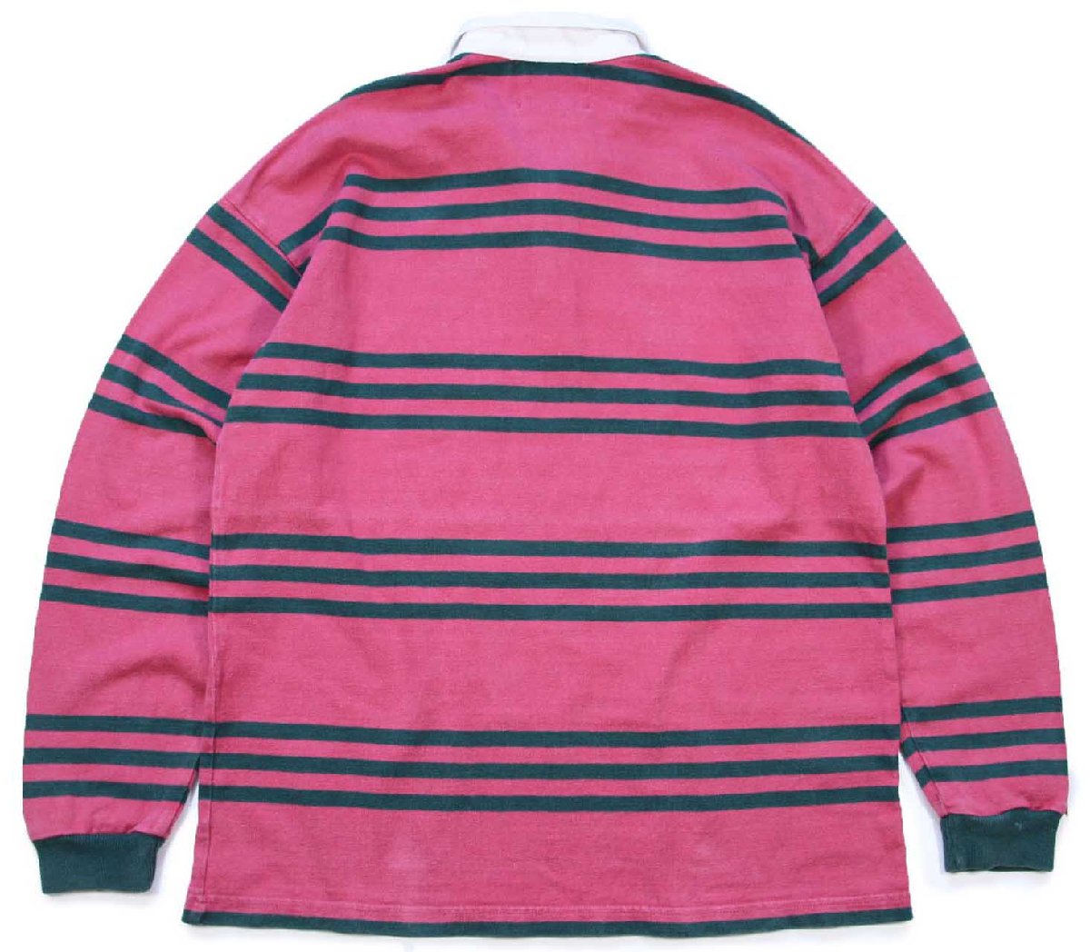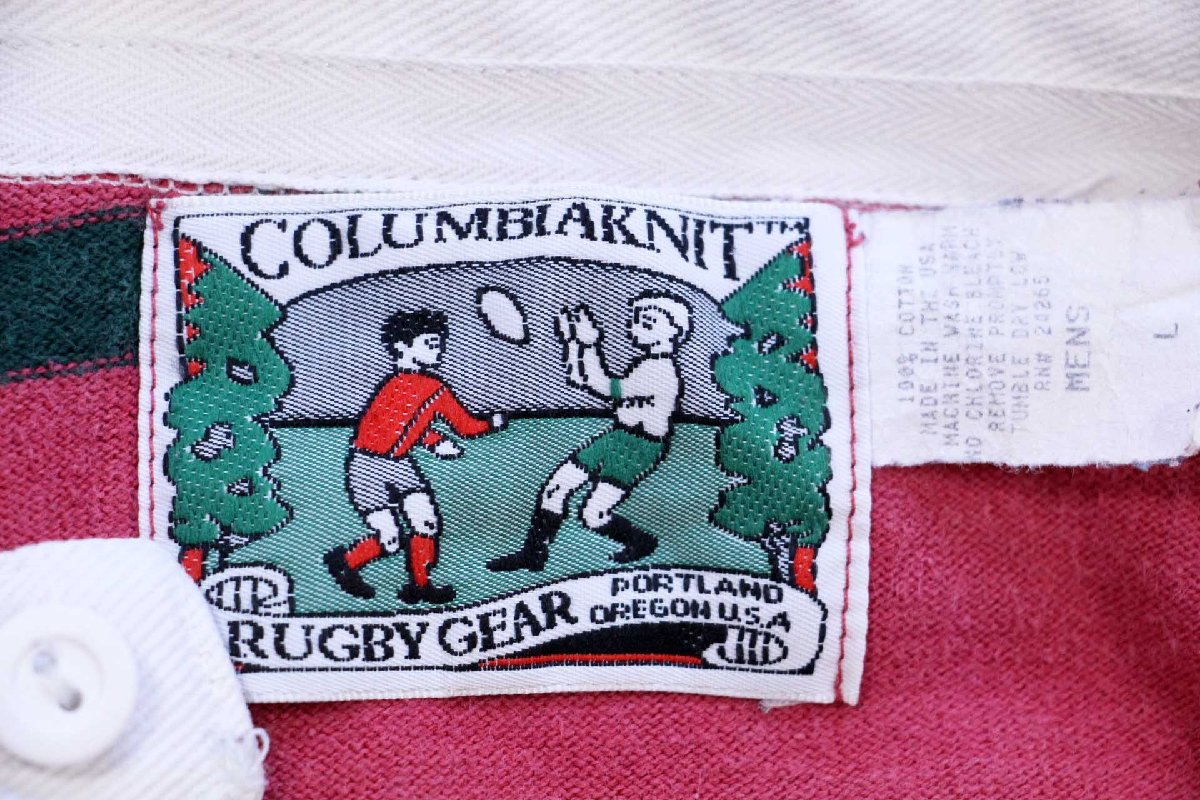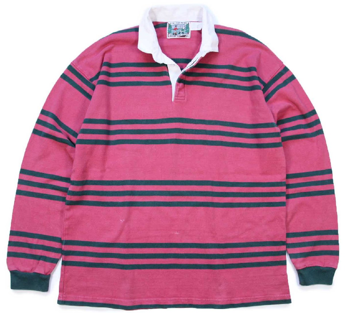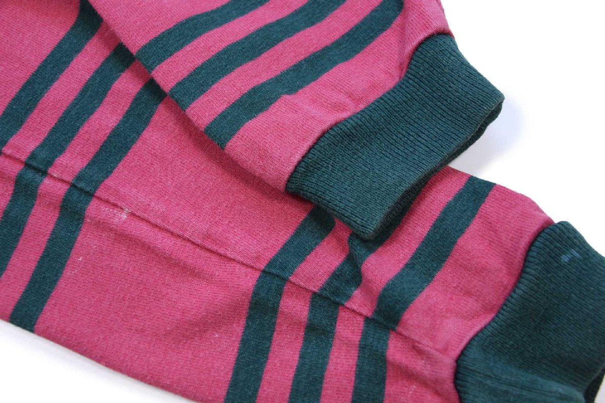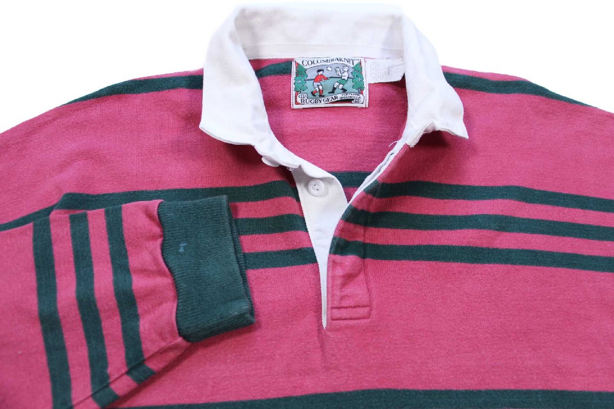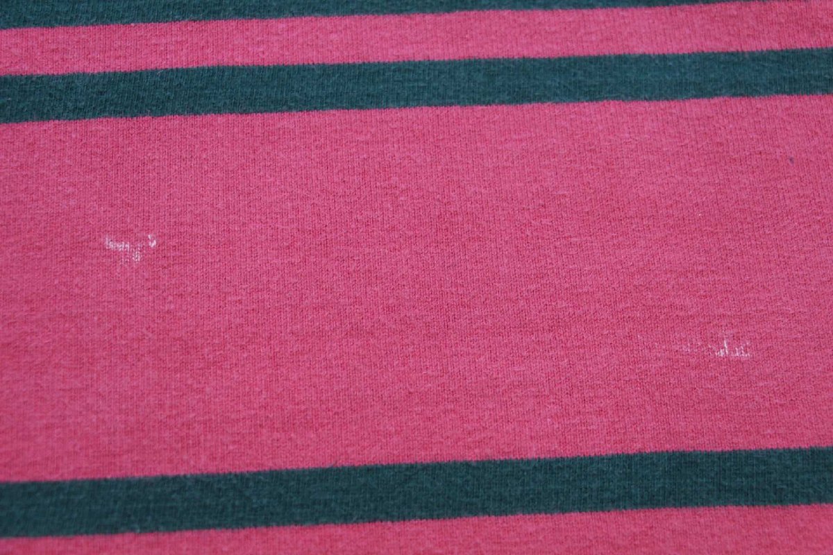 USA製 COLUMBIA KNIT ボーダー コットン ラガーシャツ ピンク×緑 L
