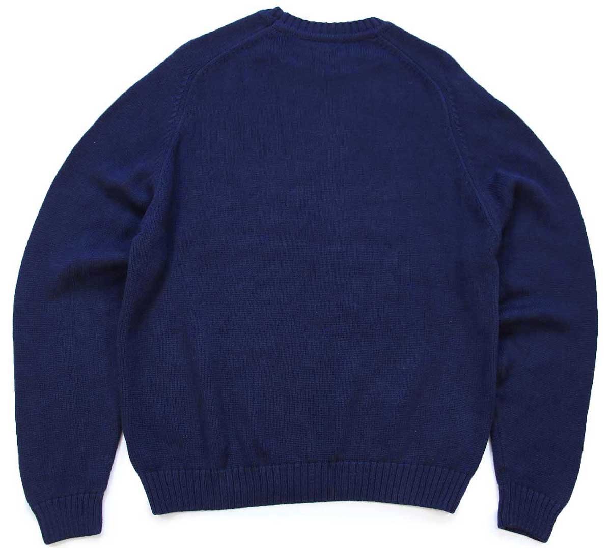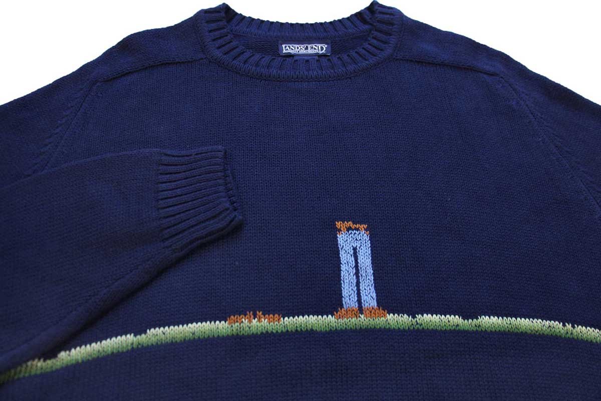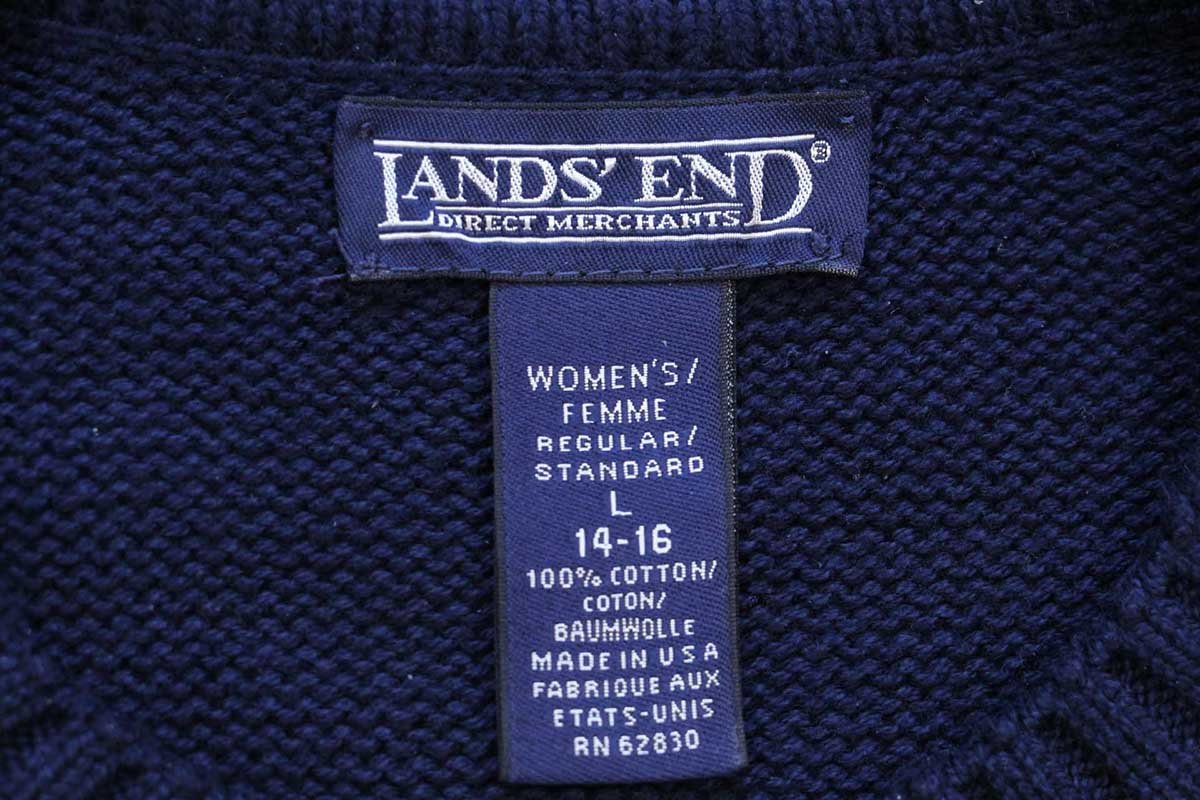 90s USA製 LANDS'ENDランズエンド 編み柄 サドルショルダー コットンニット セーター 紺 W-L