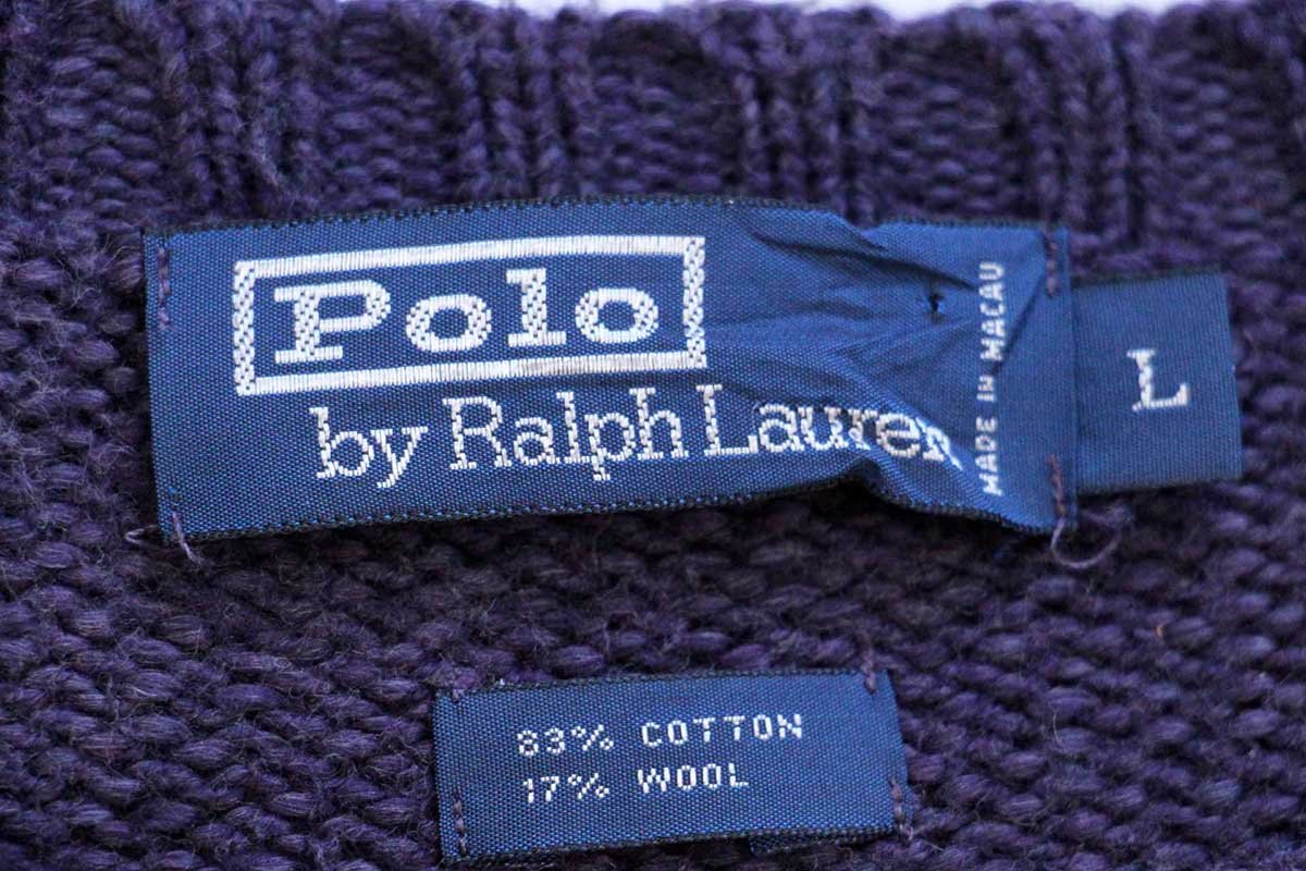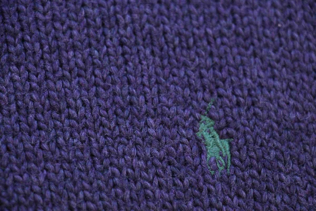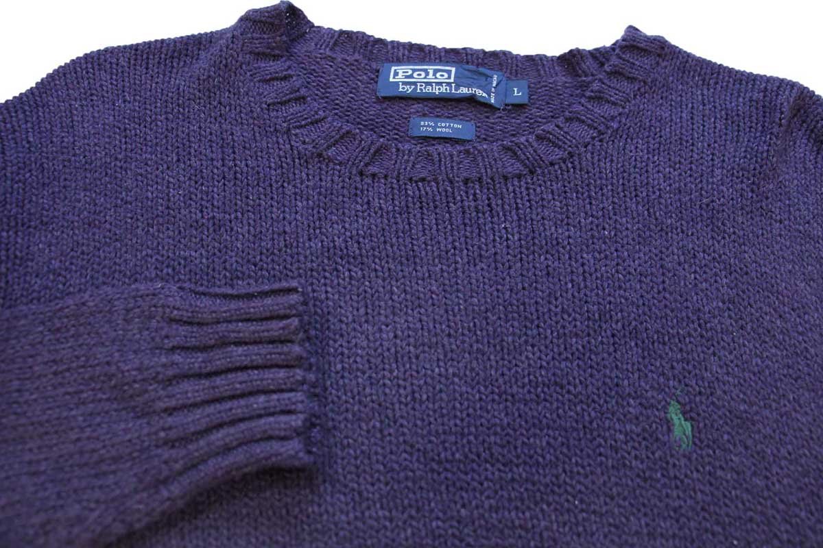 90s ポロ ラルフローレン ワンポイント コットン×ウールニット セーター パープル ミックス L