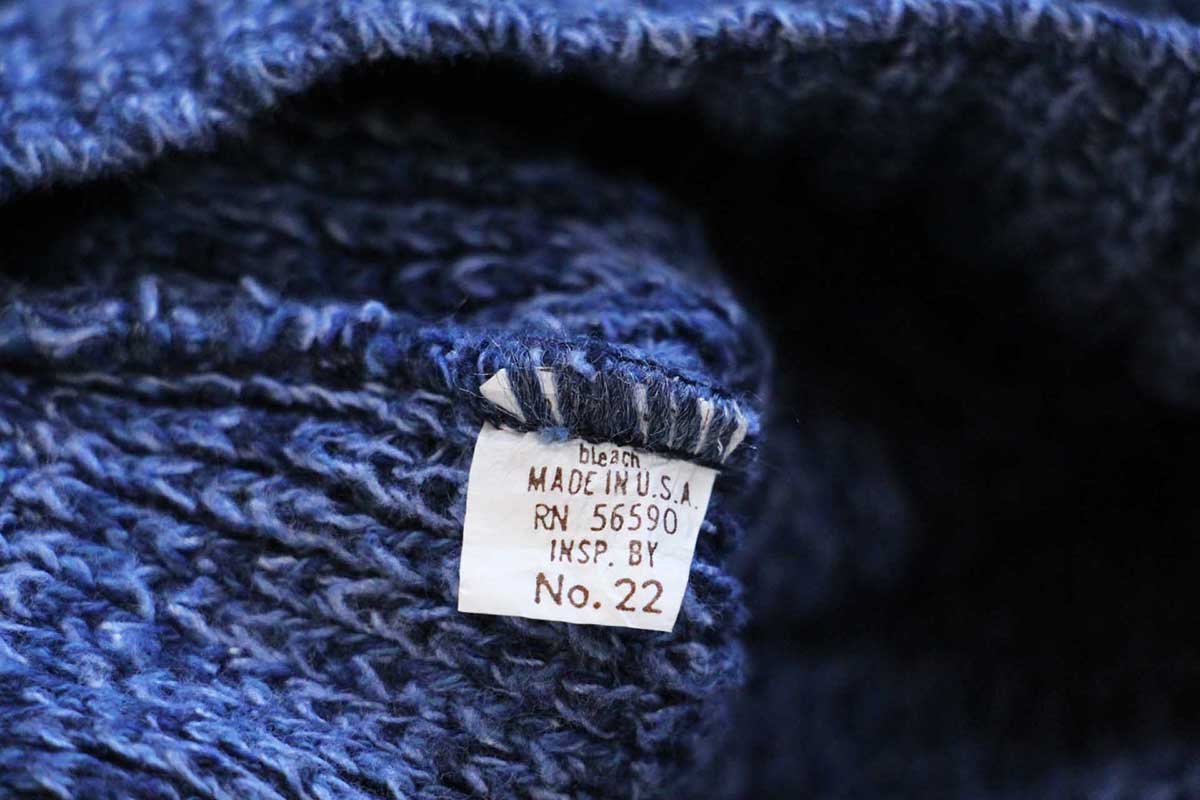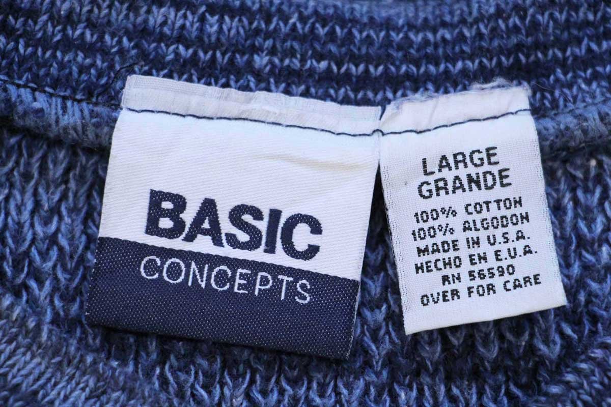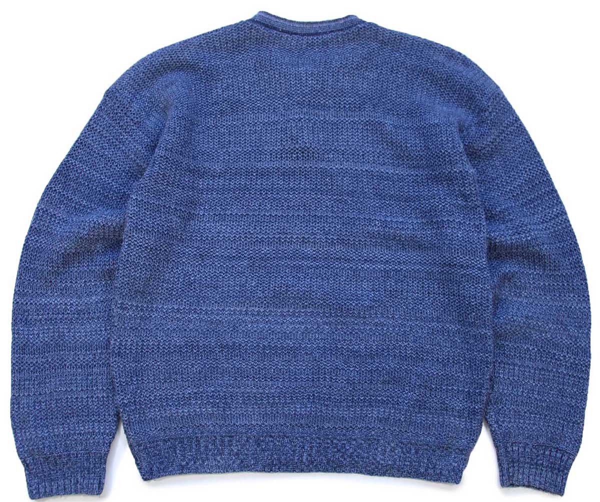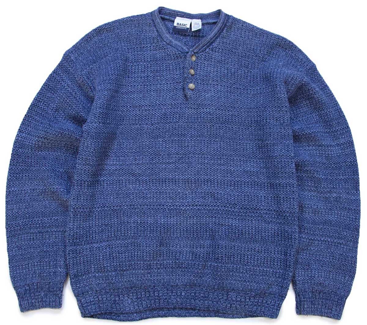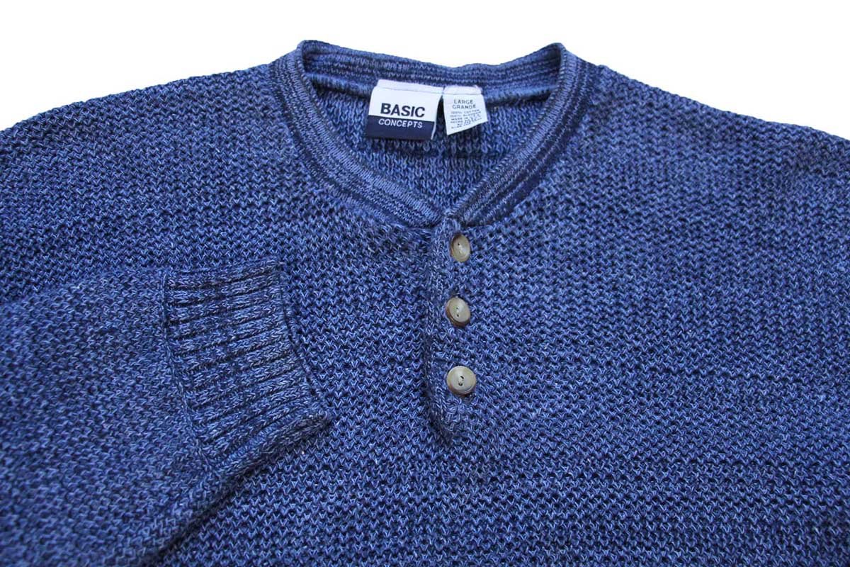 90s USA製 BASIC CONCEPTS ヘンリーネック ローゲージ コットンニット セーター インディゴ ミックス L