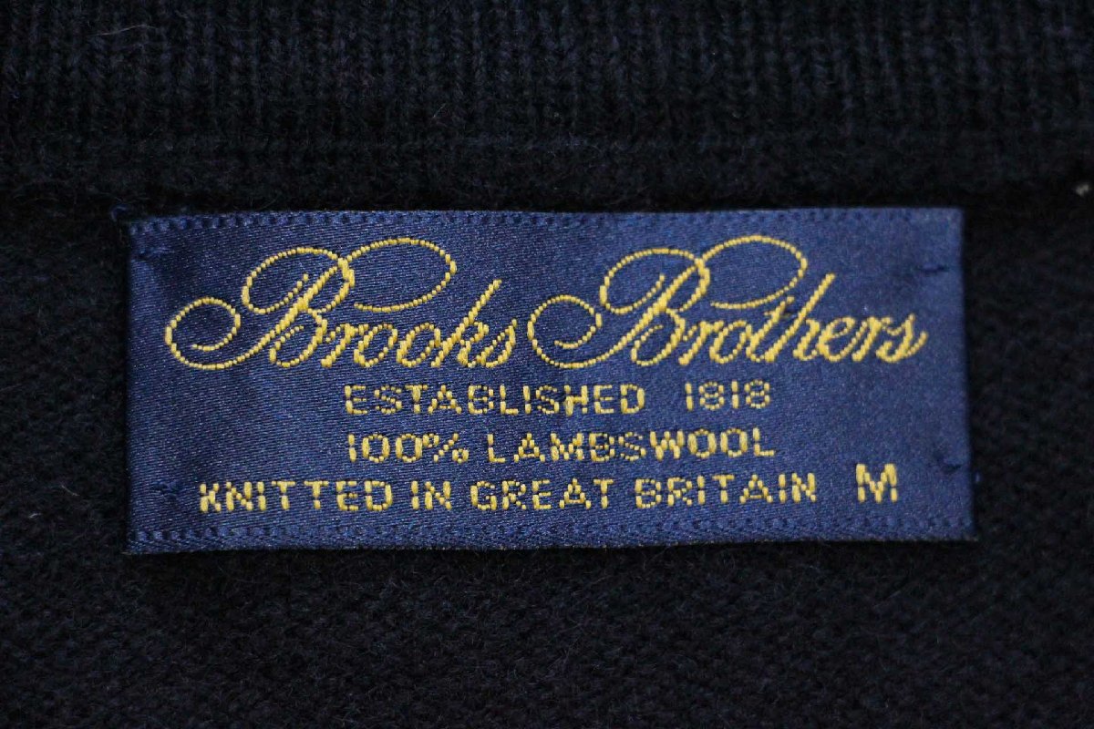 90s 英国製 BROOKS BROTHERSブルックスブラザーズ 無地 Vネック サドルショルダー ラムウールニット セーター 黒 M