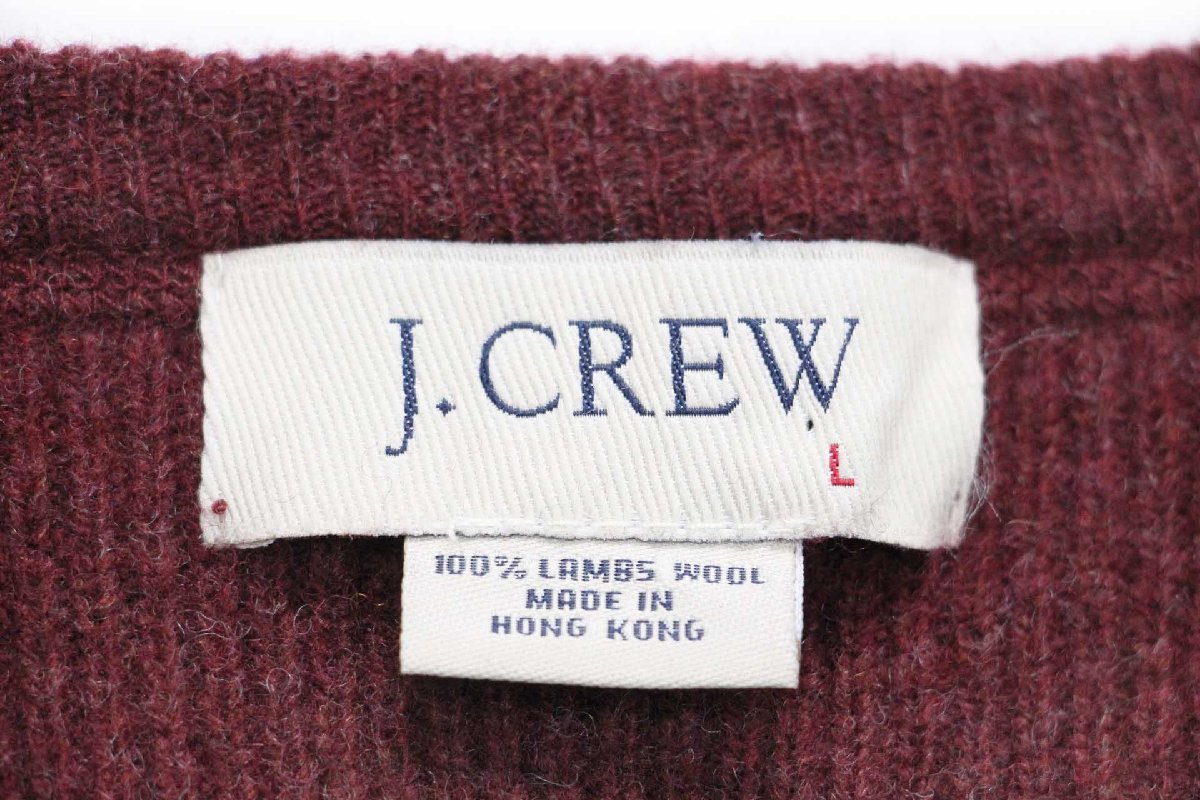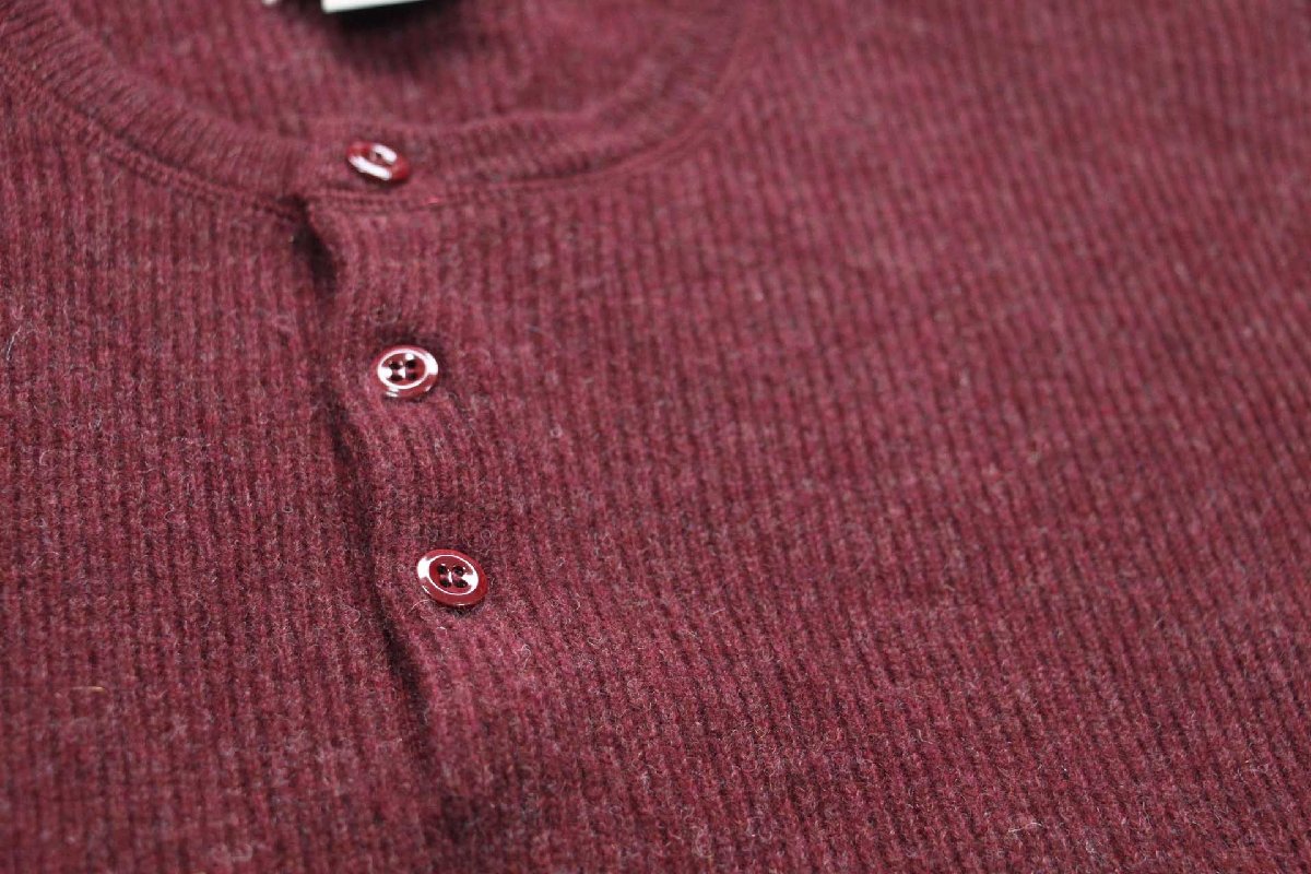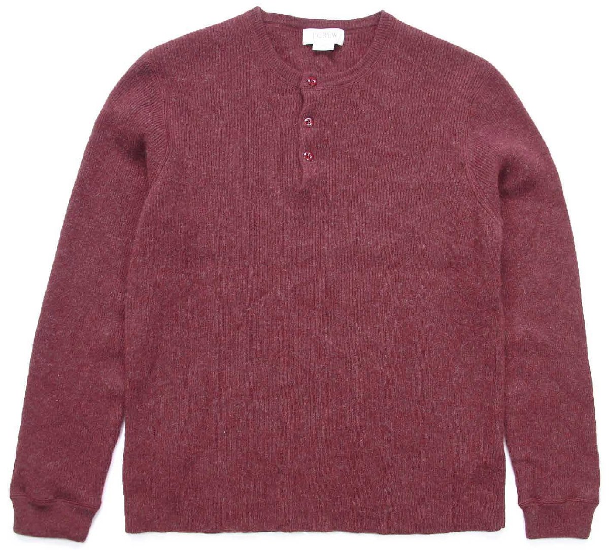 00s J.CREW 無地 ヘンリーネック ラムウールニット セーター バーガンディ L