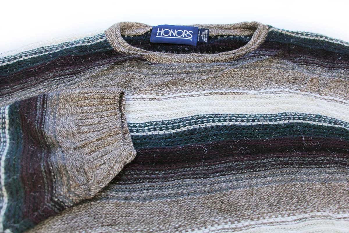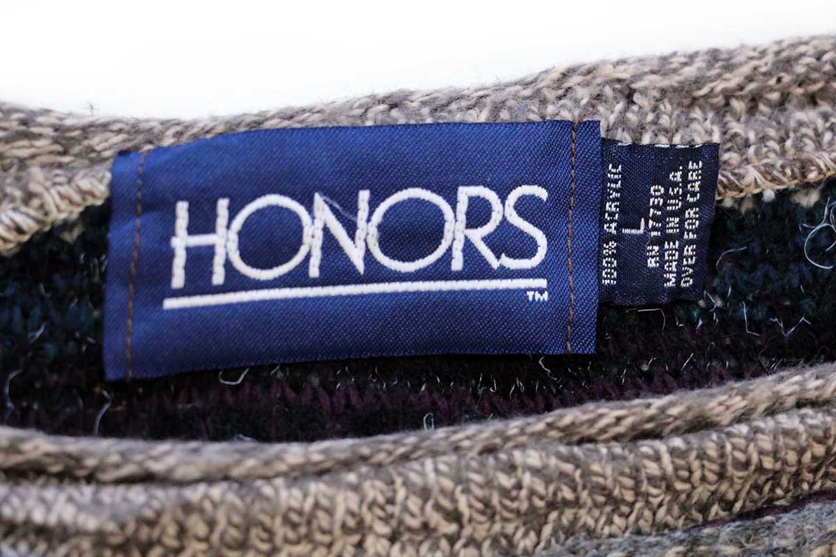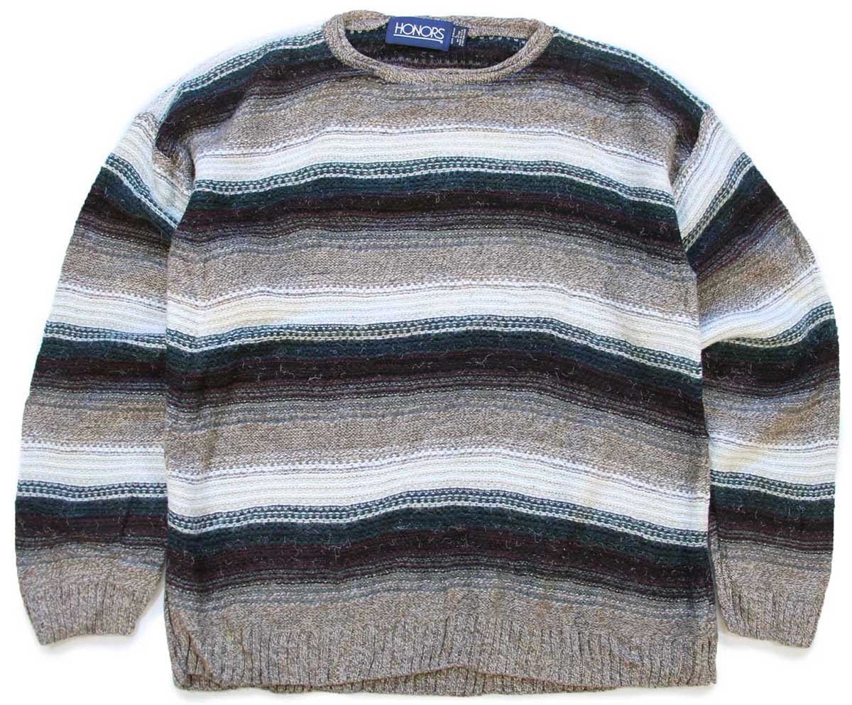 90s USA製 HONORS ラグ柄 ロールネック アクリルニット セーター L