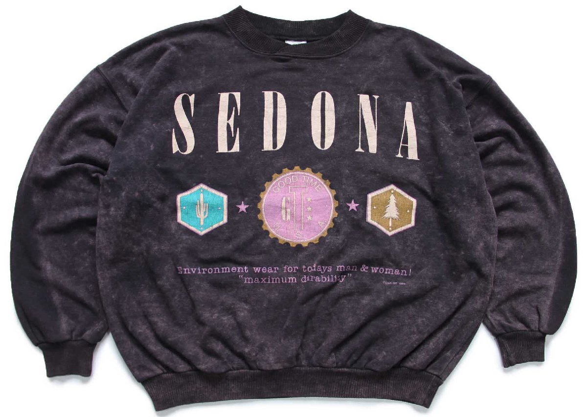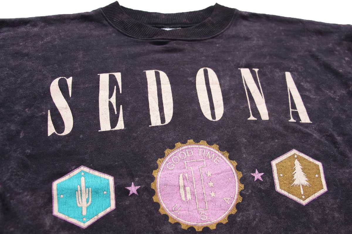 80s SEDONA ひび割れプリント アシッドウォッシュ スウェット 黒