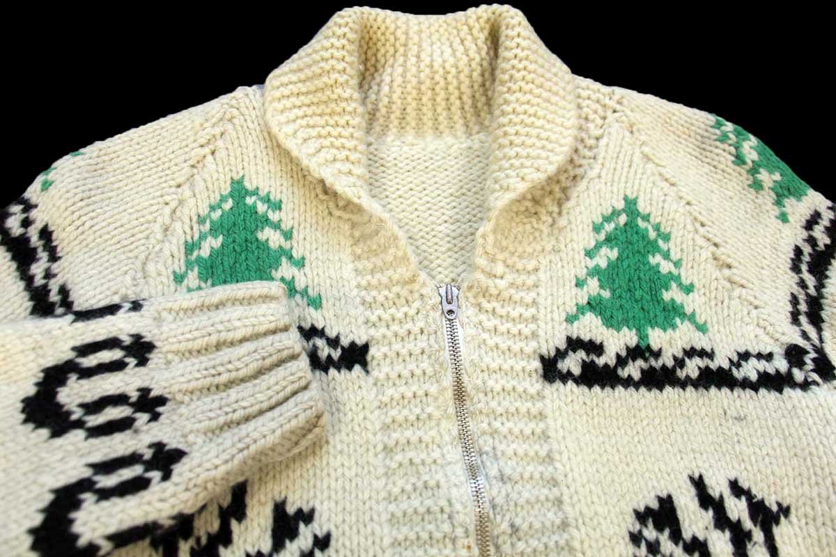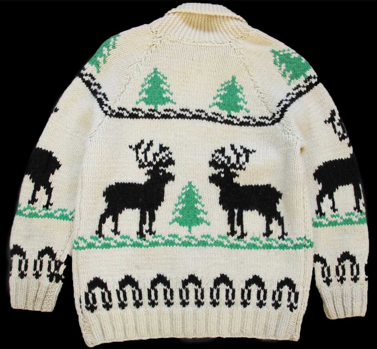 60s ムース柄 ウール ハンドニット カウチンセーター ナチュラル★鹿柄