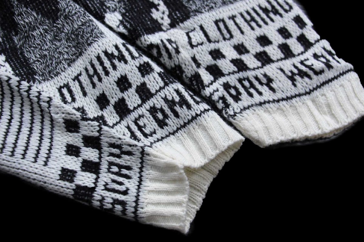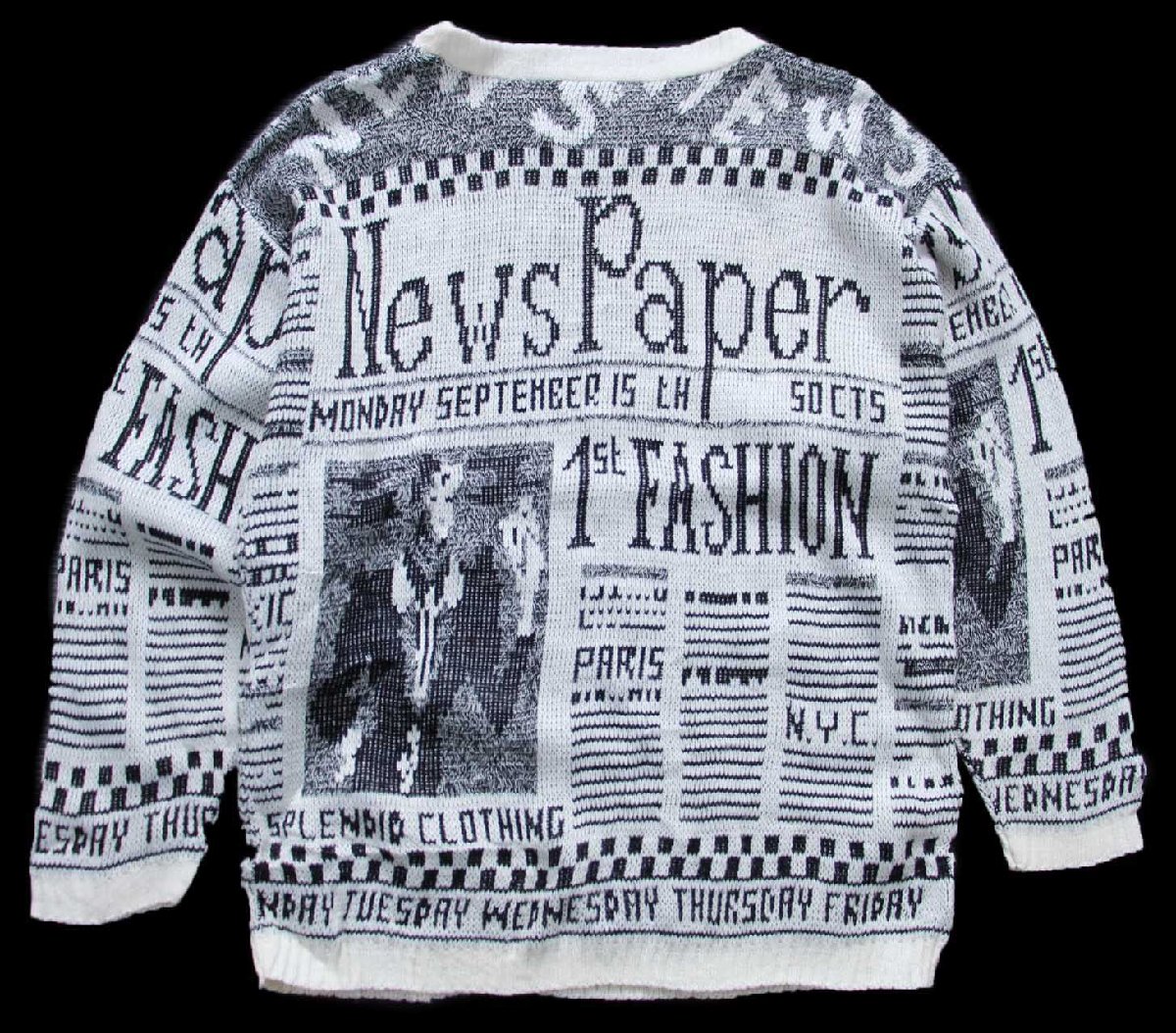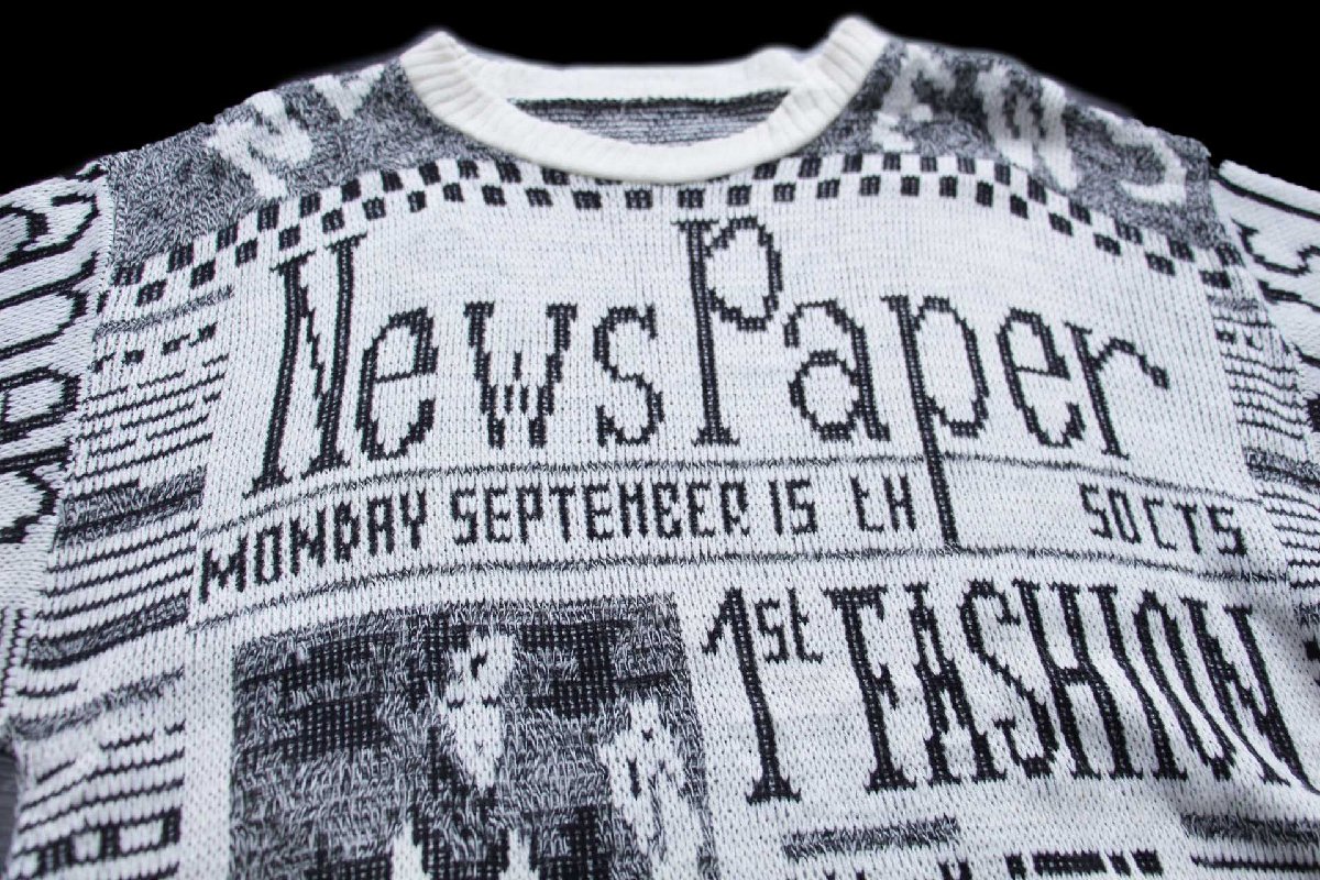 80s USA製 NewsPaper ジャガード アクリルニット セーター 白×黒