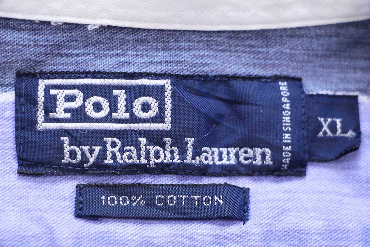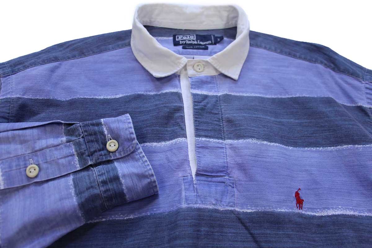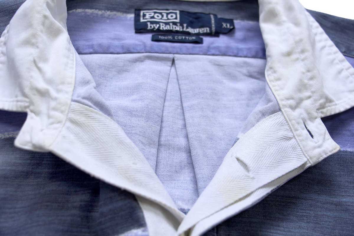 90s ポロ ラルフローレン ラガータイプ 太ボーダー プリント コットンシャツ XL
