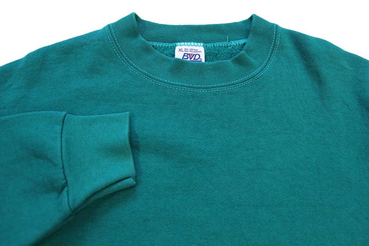 90s USA製 BVD 無地 スウェット 緑 XL★ブランク