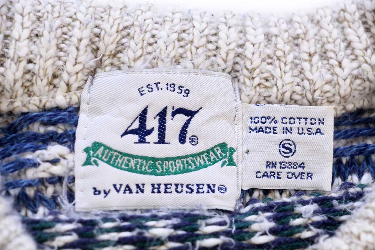 90s USA製 417 VAN HEUSEN フェアアイル柄 コットンニット セーター S