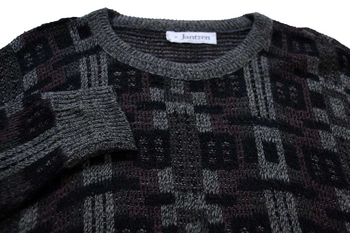 80s USA製 Jantzen 総柄 ジャガード アクリルニット セーター M