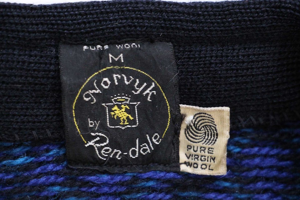 70s Norvyk by Ren-Dale ノルディック柄 ノーカラー ボタニーウールニット カーディガン M