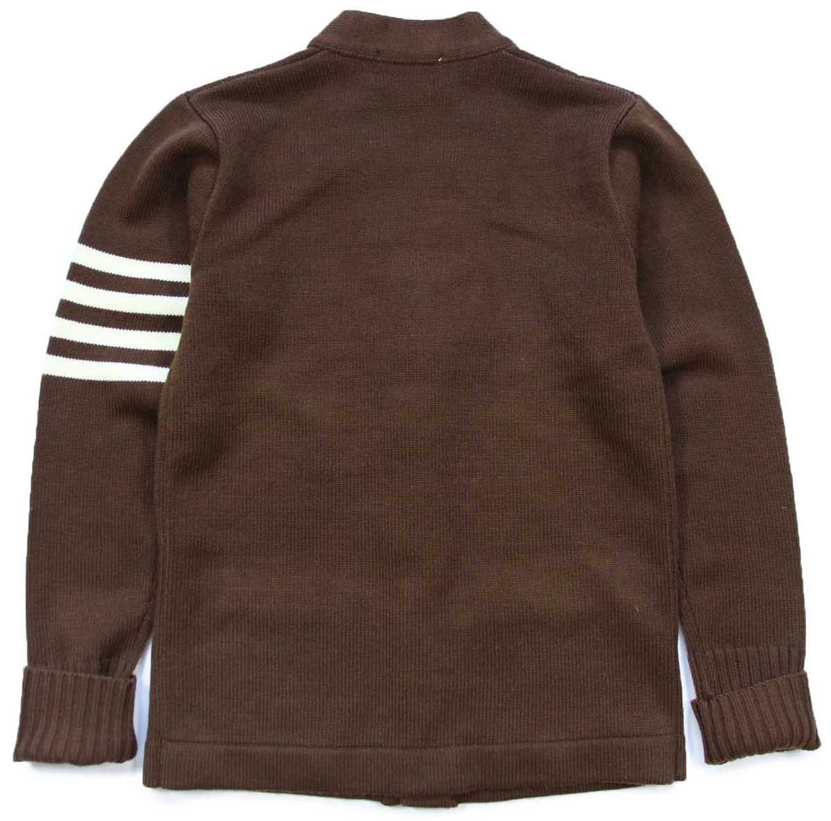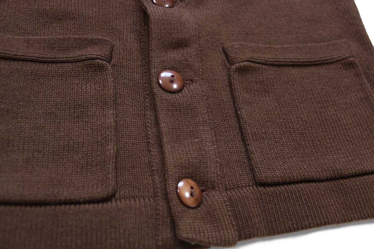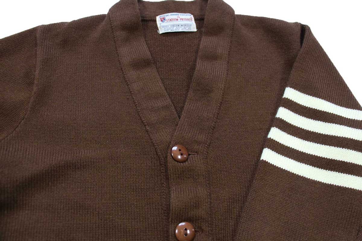 70s STADIUM-PRODUCT パチポケ アクリルニット レタードカーディガン 茶