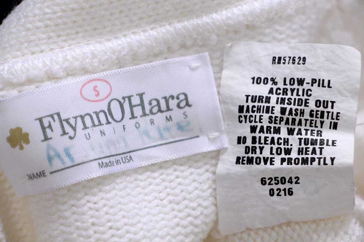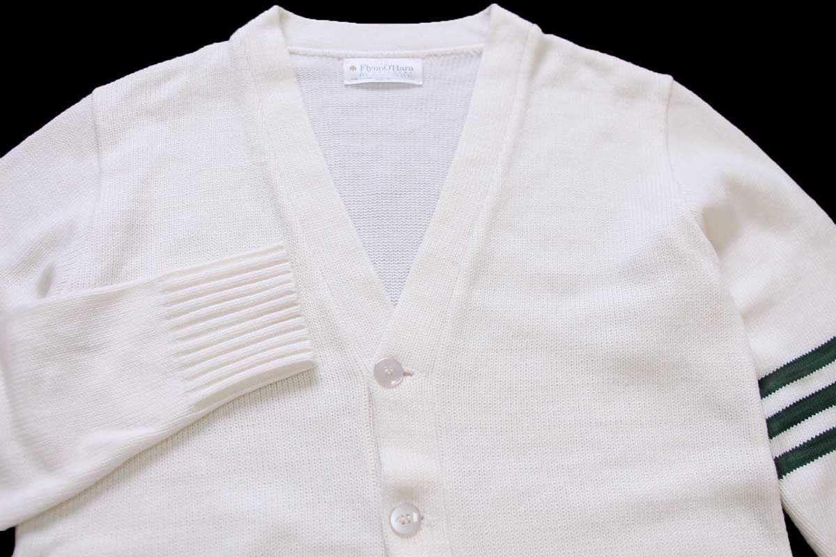 USA製 FlynnO'Hara アクリルニット レタードカーディガン ホワイト S