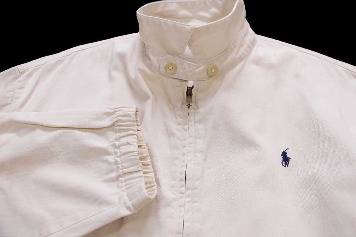 80s USA製 ポロ ラルフローレン ワンポイント チンスト付き コットンジャケット アイボリー XL