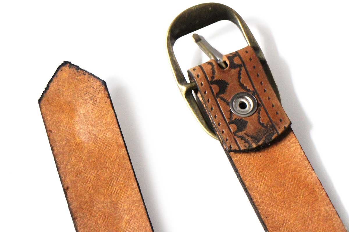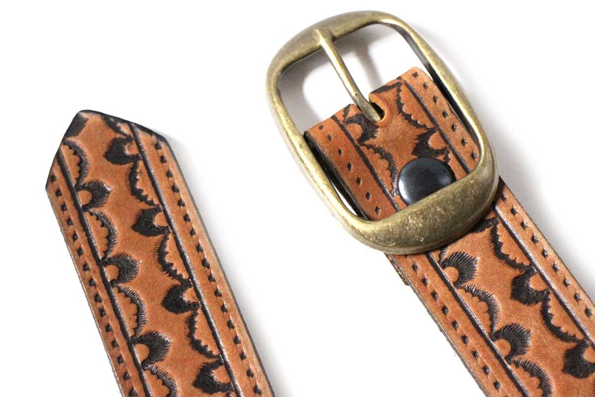 新品★USA製 BRACKNEY LEATHER WORKS スカラップパターン 型押し レザーベルト ブラウン 34