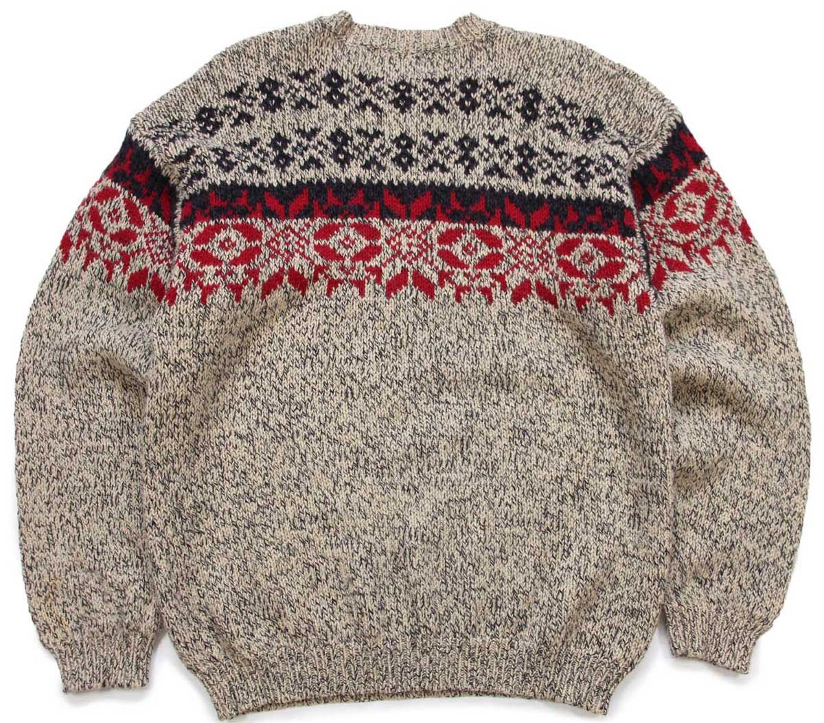 90s EddieBauerエディーバウアー LEGENDS 雪柄 ノルディック柄 ローゲージ ウールニット セーター L