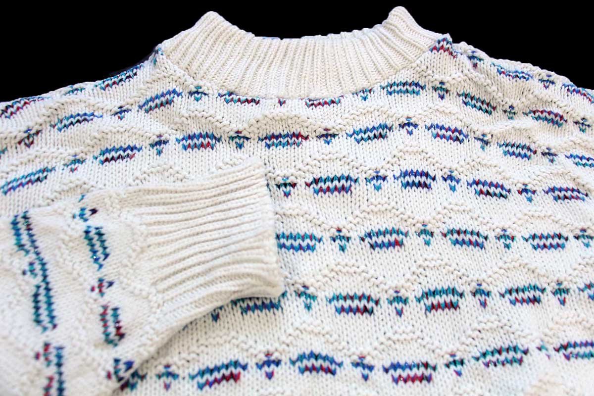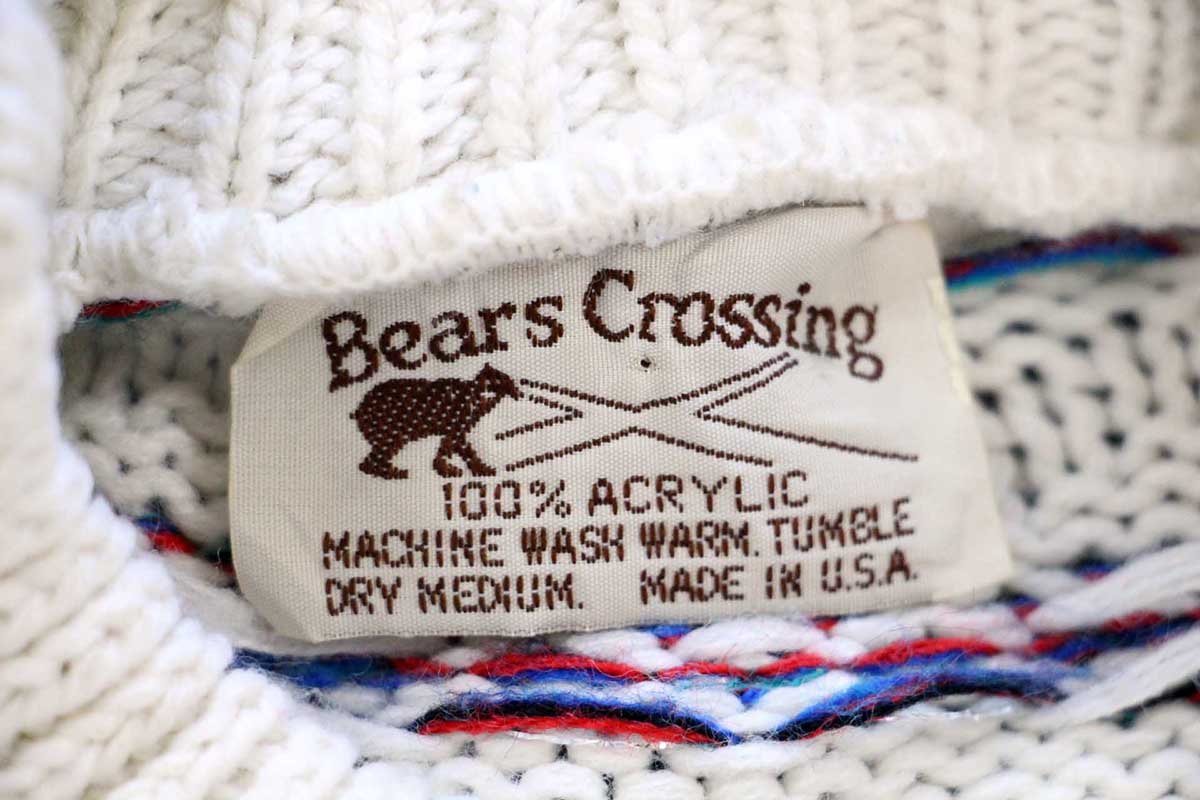 90s USA製 Bears Crossing 編み柄 モックネック アクリルニット セーター 白