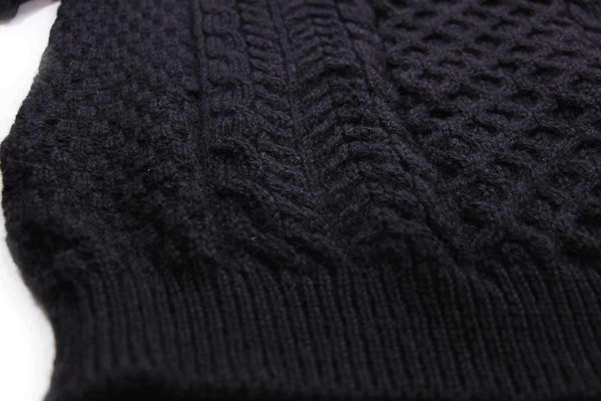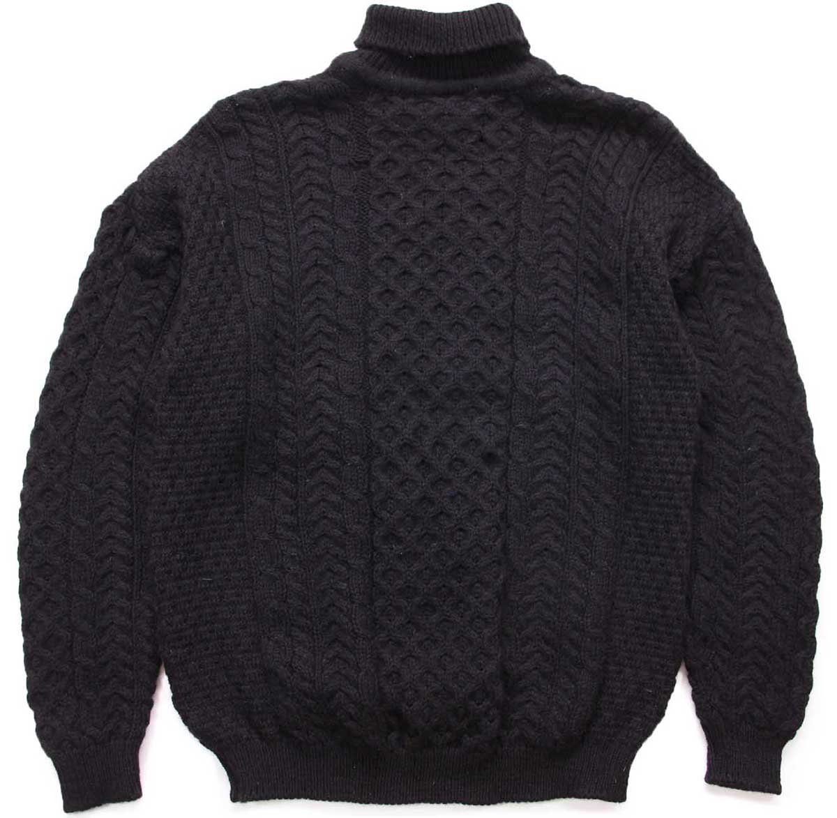 アイルランド製 Carraig Donn タートルネック ケーブル編み ウールニット セーター 黒 XL★フィッシャーマン