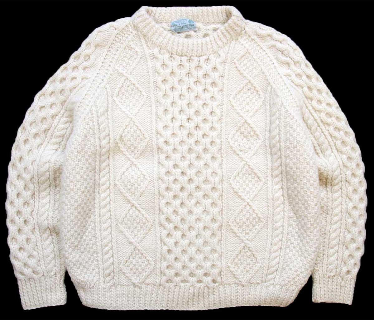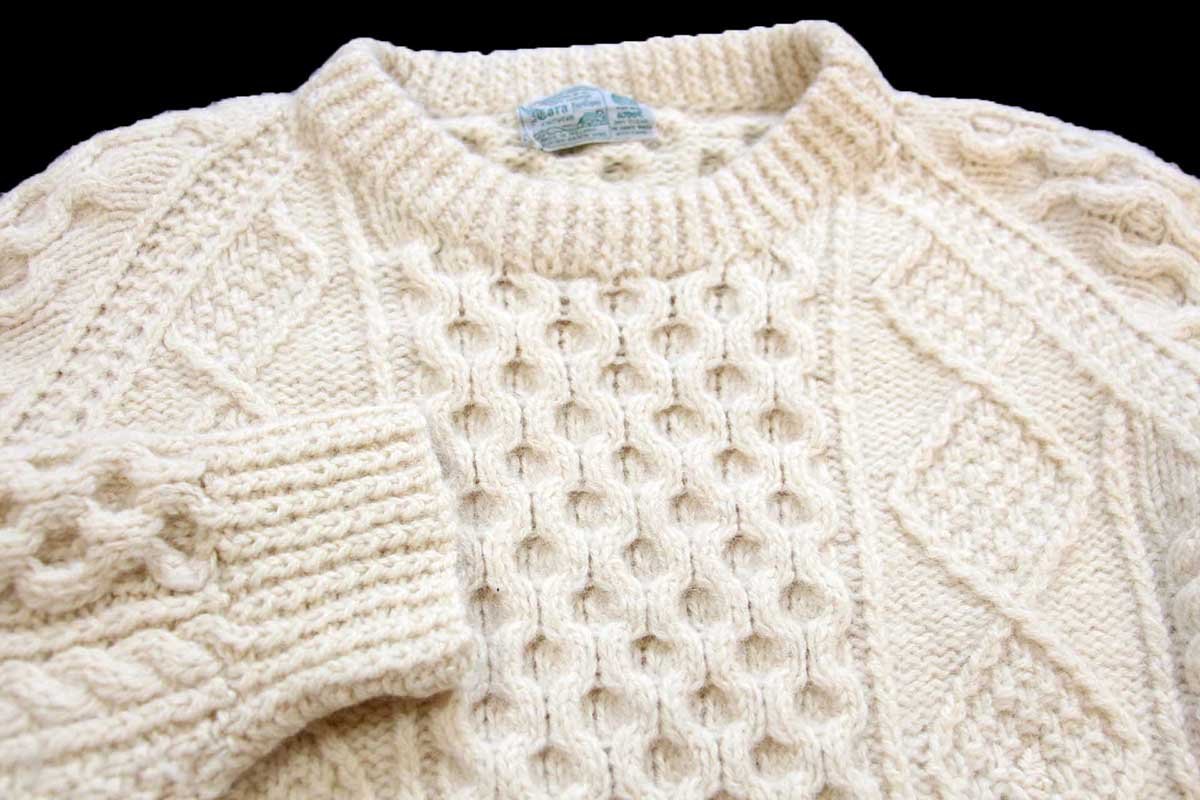 アイルランド製 Tara fashions ケーブル編み アイリッシュ バイニン ウールニット セーター ナチュラル★フィッシャーマン