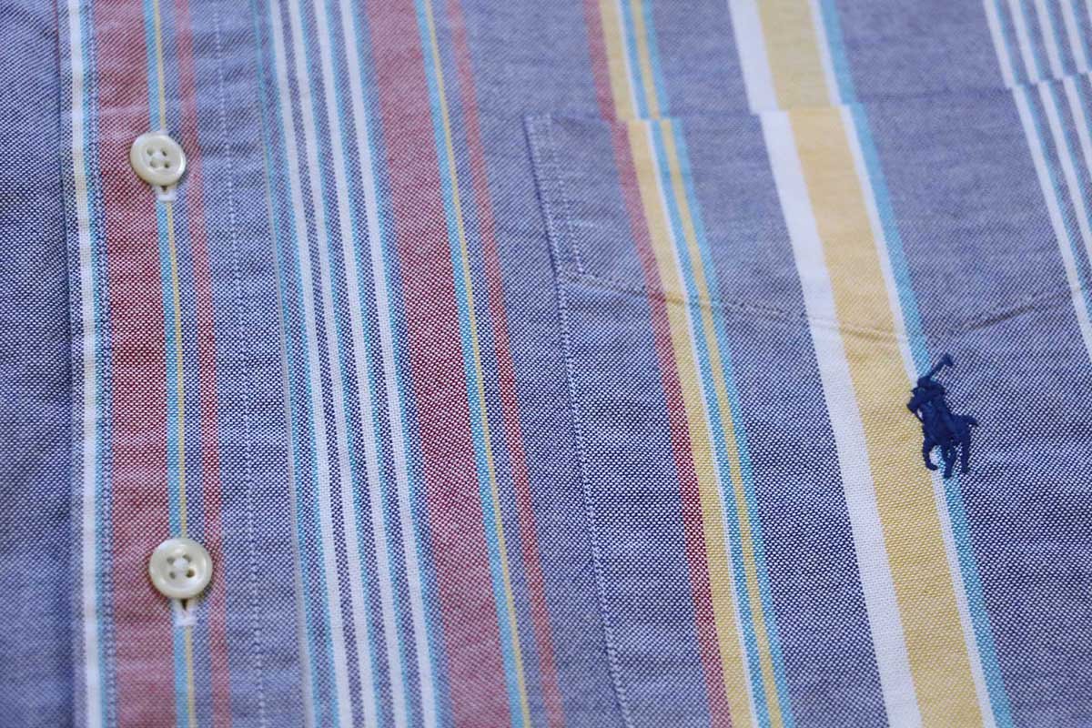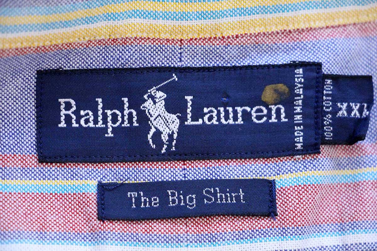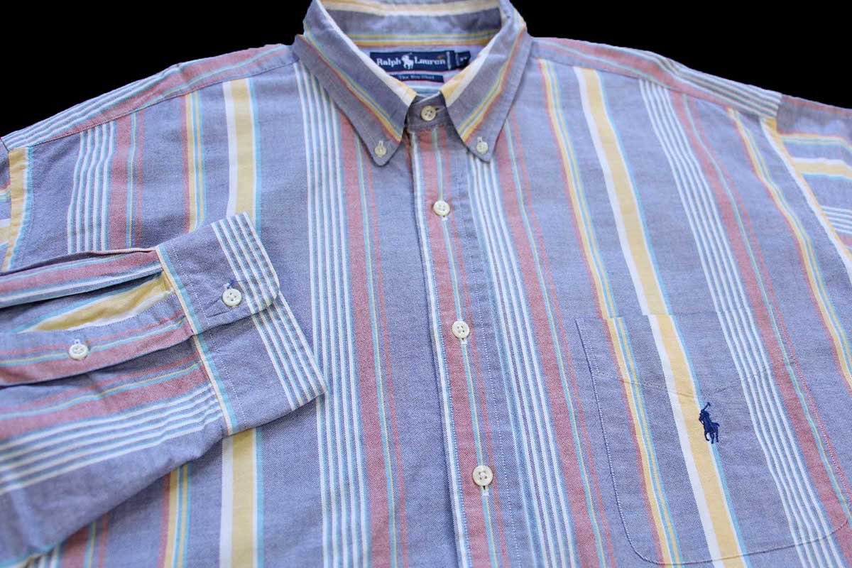 90s ラルフローレン The Big Shirt ランダムストライプ ボタンダウン オックスフォード コットンシャツ XXL★特大