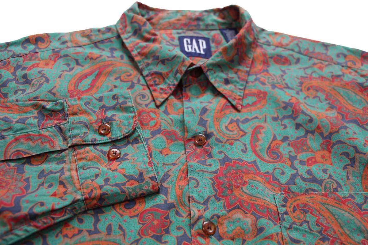 90s GAPギャップ ペイズリー 総柄 コットンシャツ L