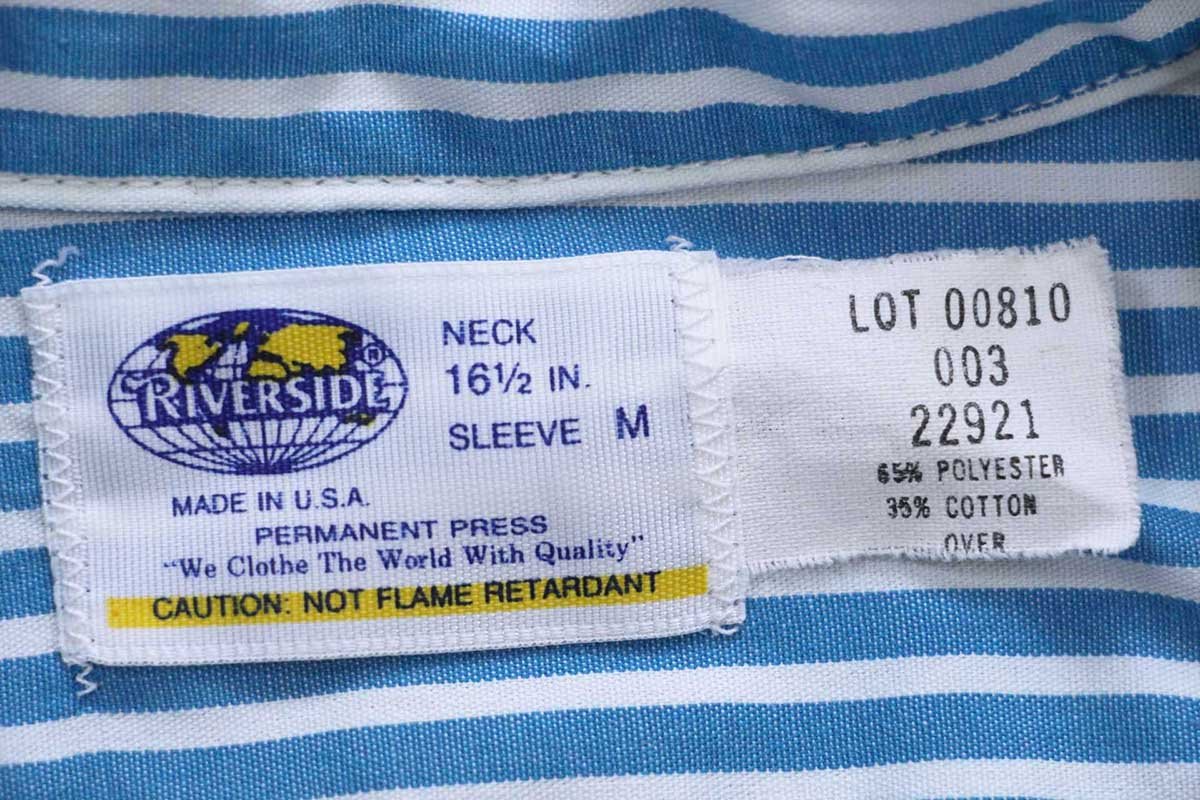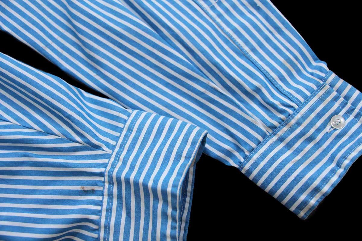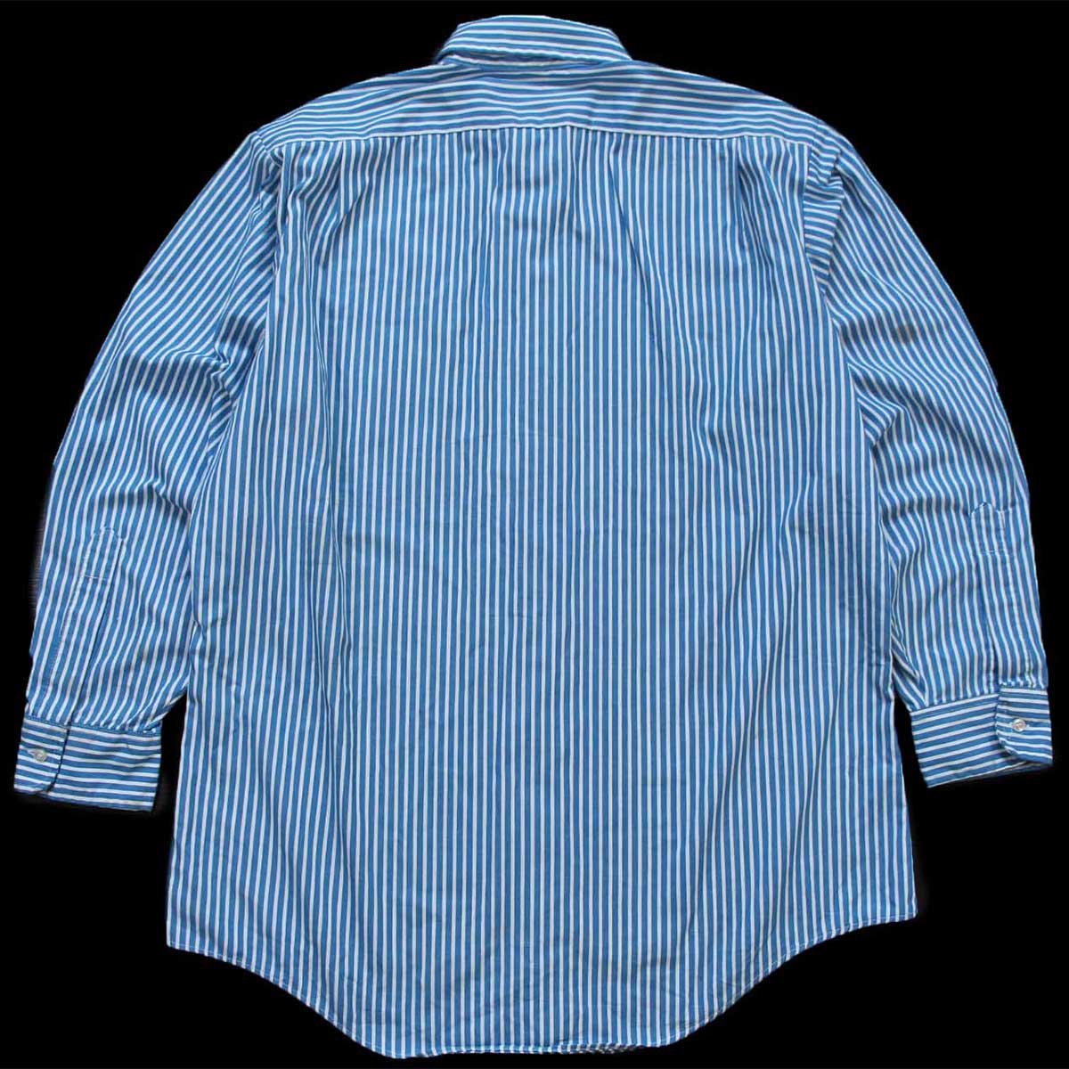 80s USA製 RIVERSIDE PEPSIペプシ パッチ&チェーン刺繍 ストライプ ワークシャツ 青×白 16.5