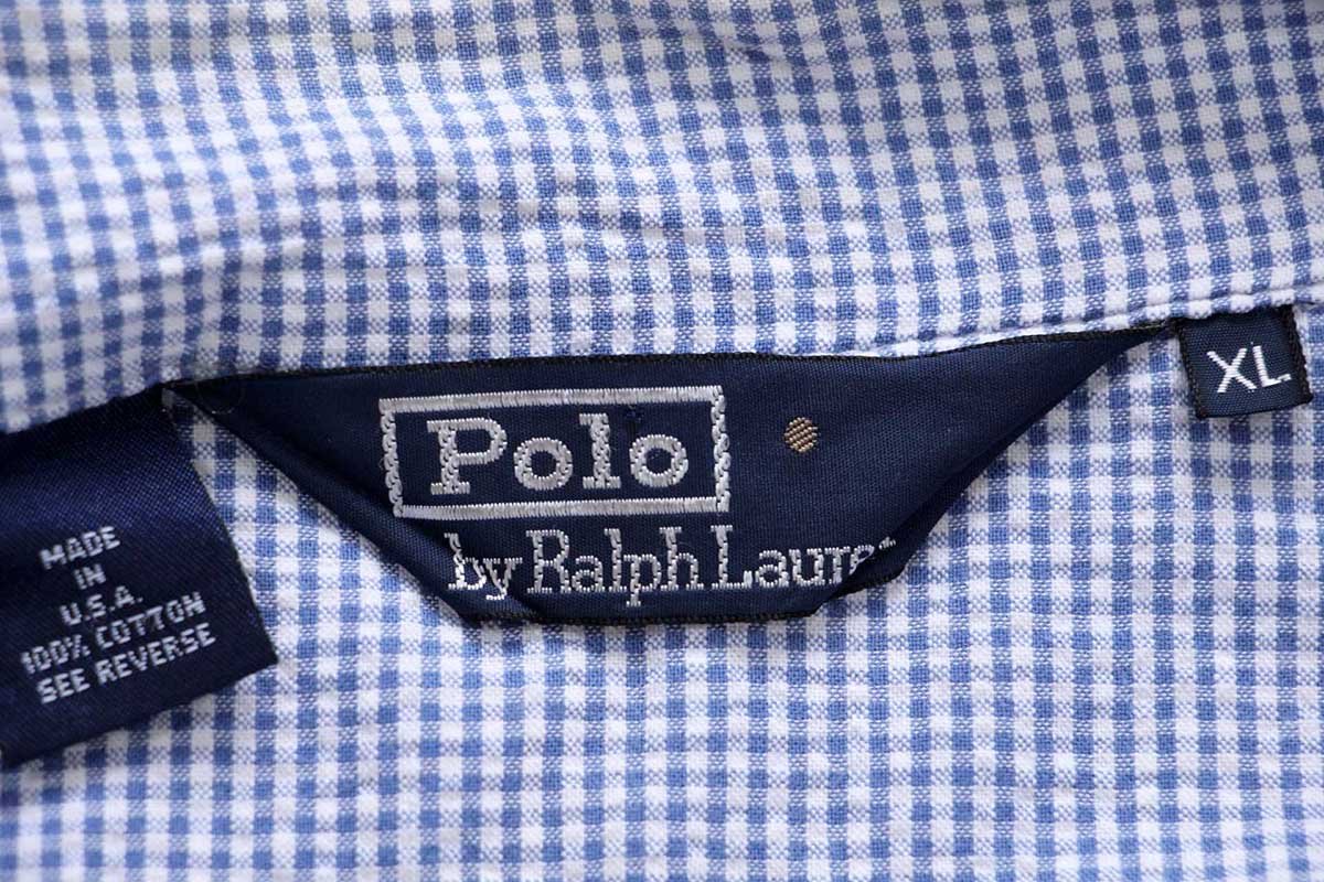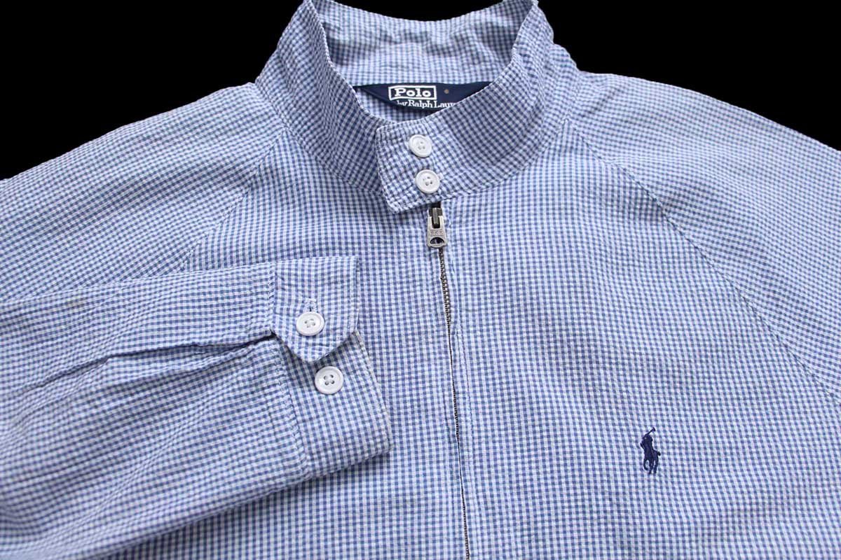 90s USA製 ポロ ラルフローレン G9タイプ ギンガムチェック コットン シアサッカー ハリントンジャケット XL