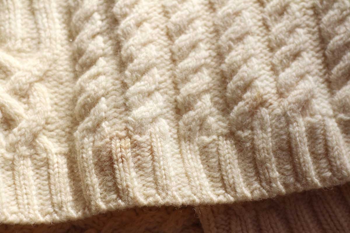 ケーブル編みが施された厚みのある柔らかいニットです。