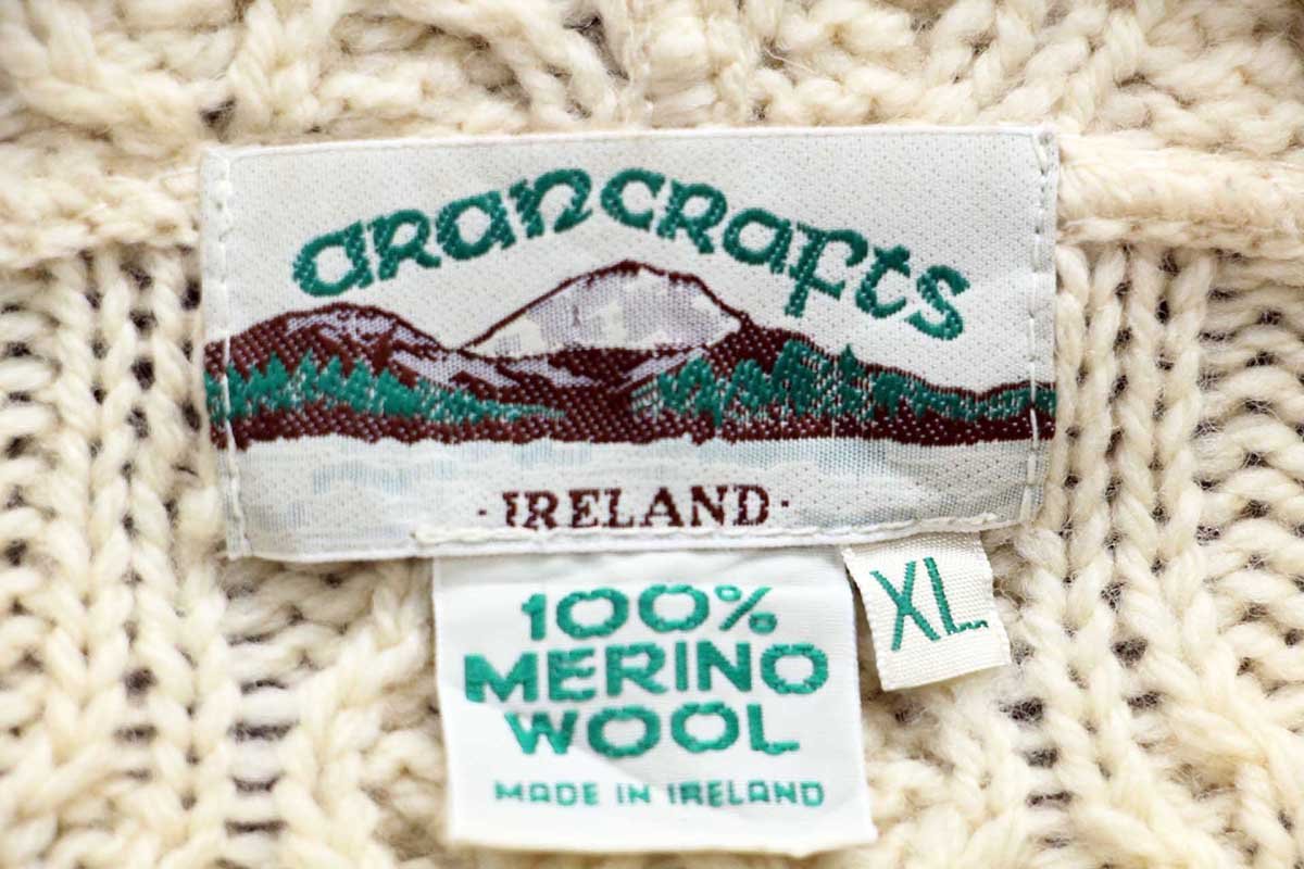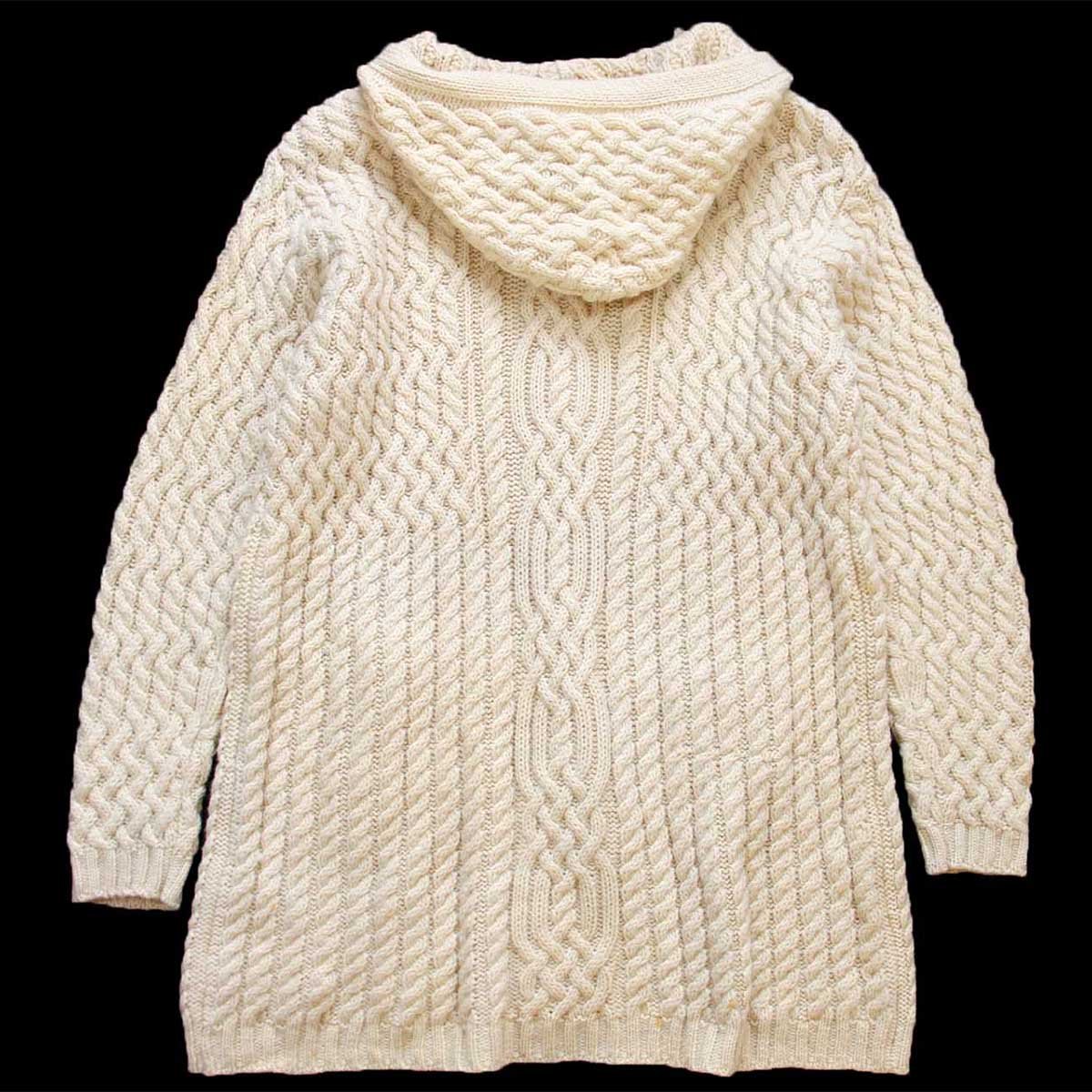 アイルランド製 aran crafts ケーブル編み ロング メリノウールニット パーカー ナチュラル XL★カーディガン フィッシャーマン