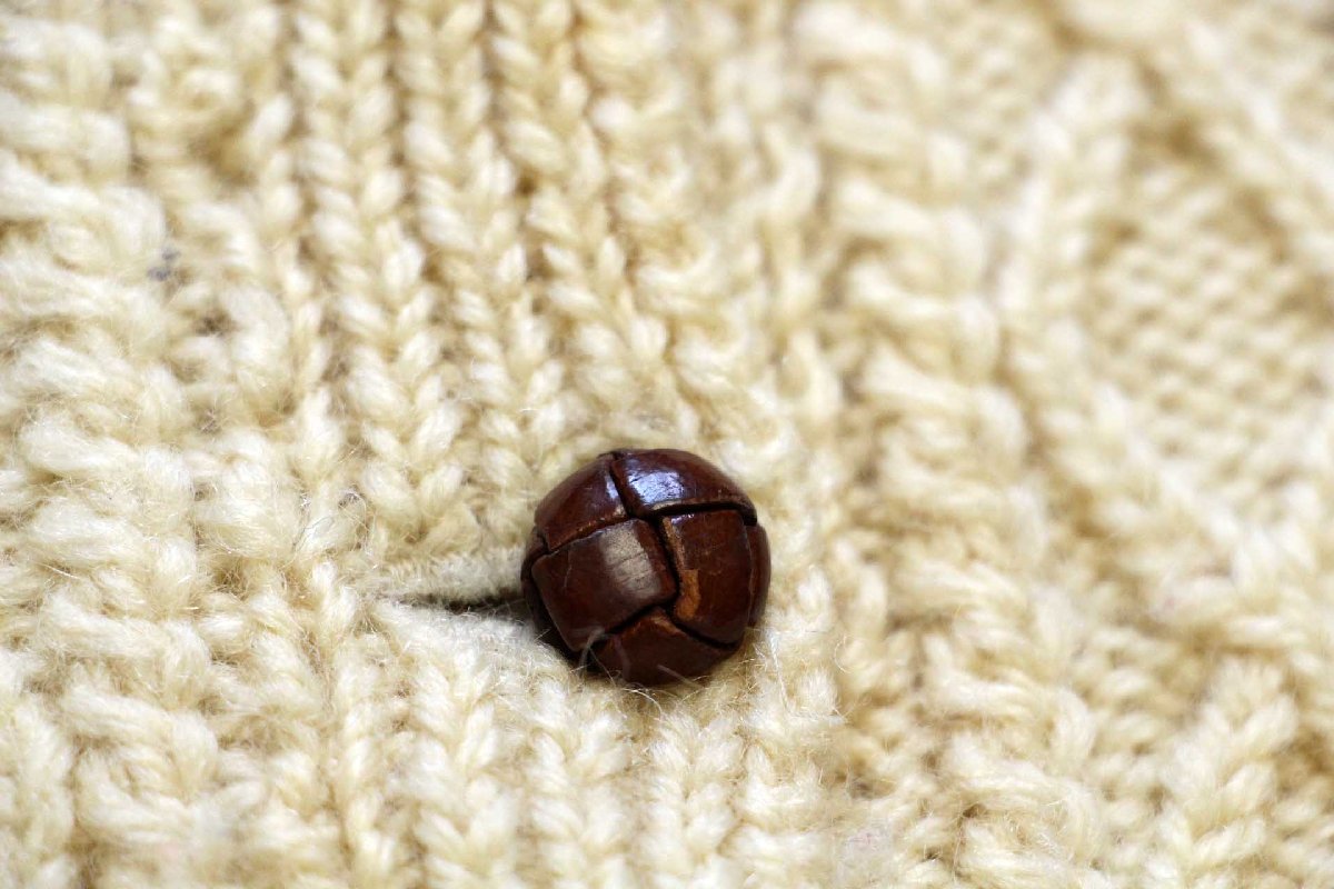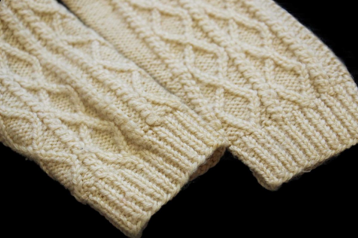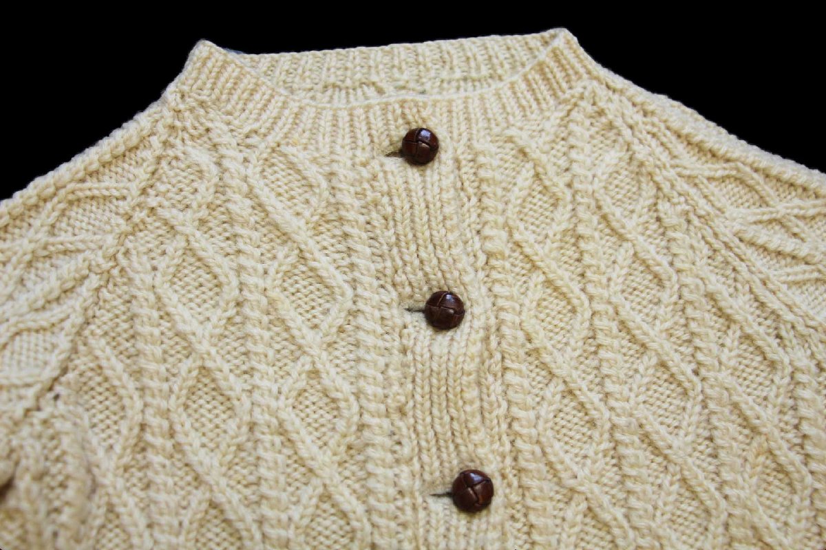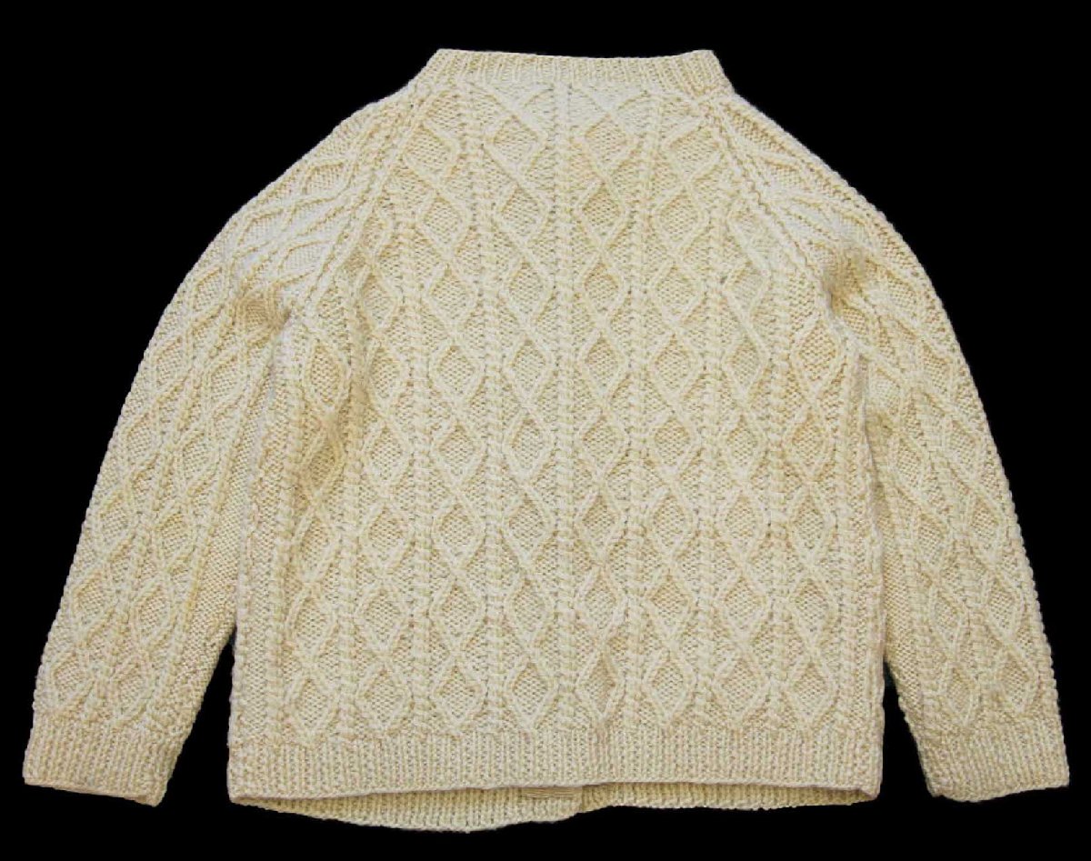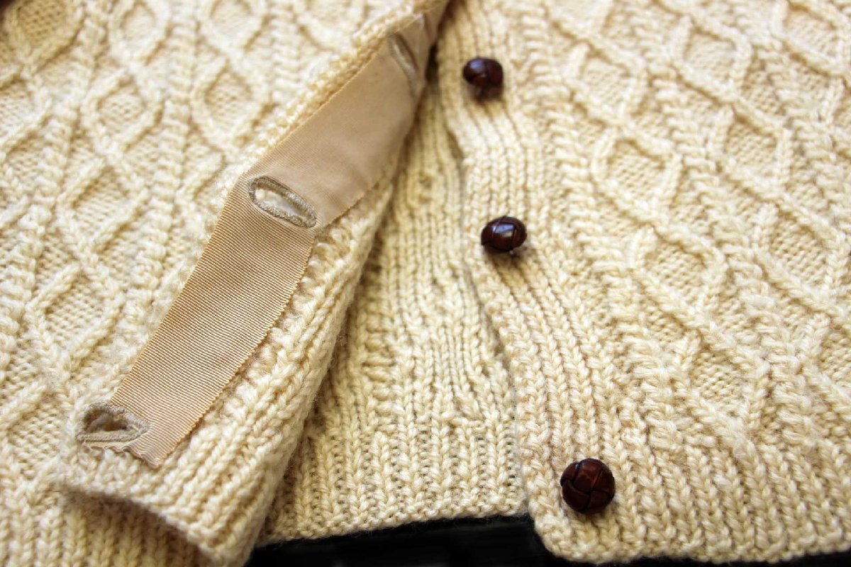 UNKNOWN ケーブル編み ウール ハンドニット カーディガン ナチュラル キッズ★フィッシャーマン