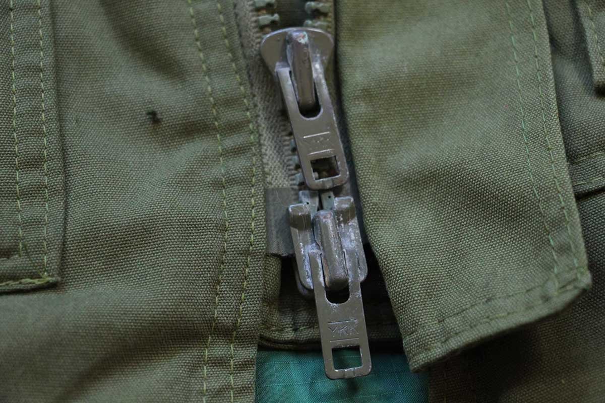 フロントYKKダブルジップ、フロントヨーク部はキルティングの切り替え、フードに紐あり、袖口内にリブあり、背中にアクションプリーツあり、ハンドウォーマーポケットあり、フロント下部ポケットは二層になっています。