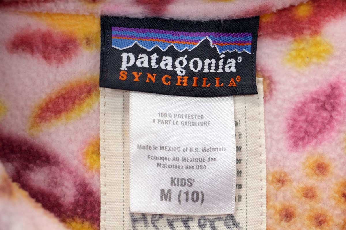 00s patagoniaパタゴニア 総柄 マースピアル ハーフジップ プルオーバー シンチラ フリース KIDS' M