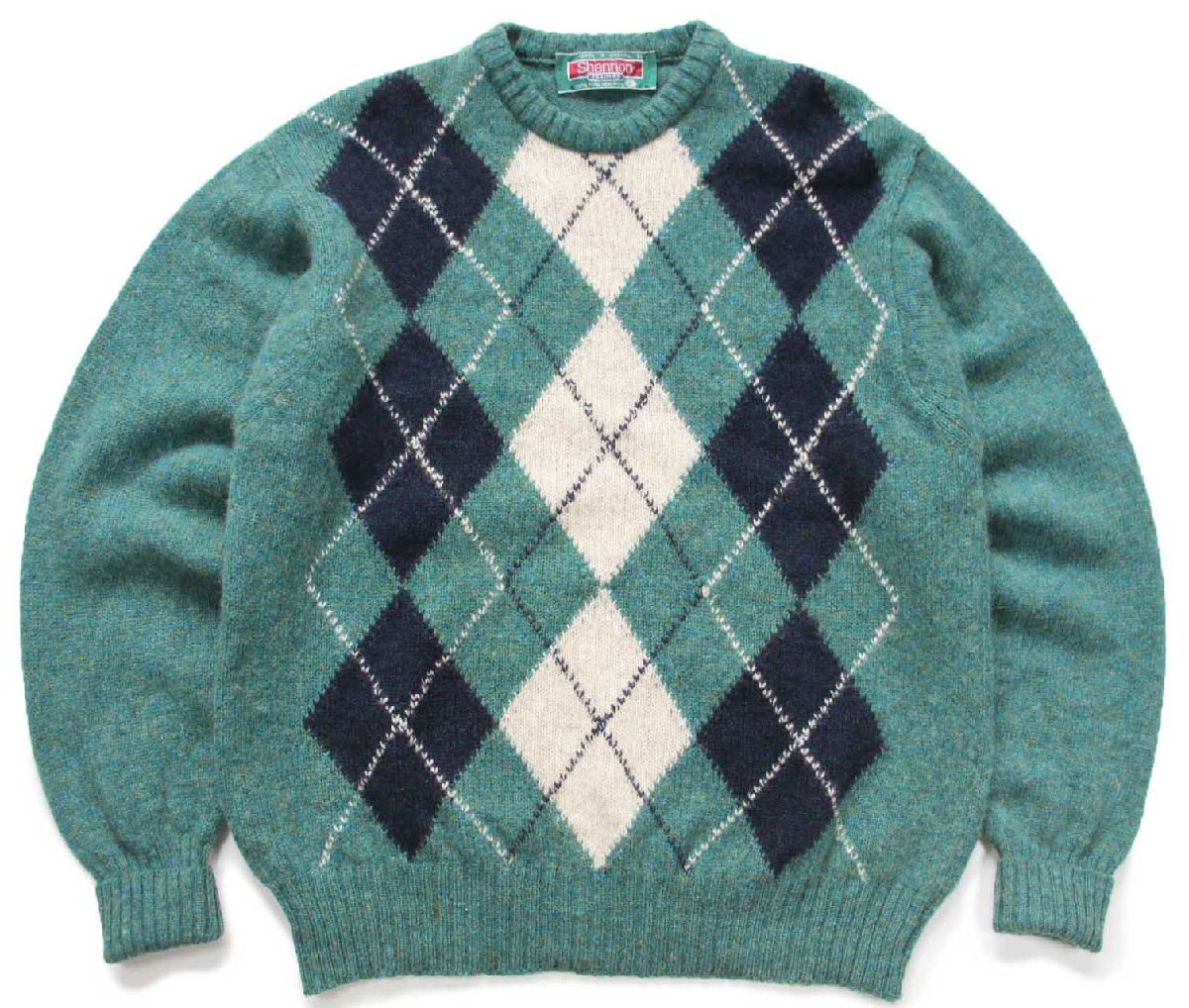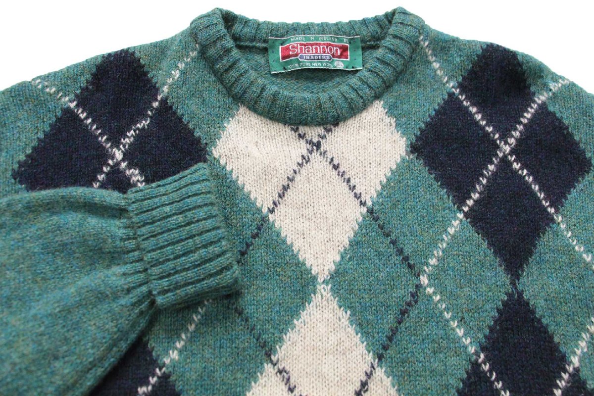 80s アイルランド製 Shannon TRADERS アーガイル柄 シェットランド ウールニット セーター XL