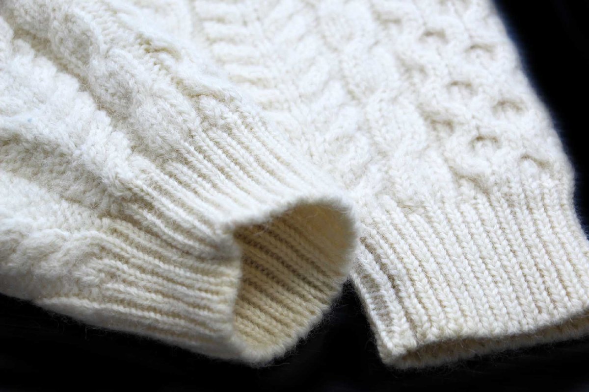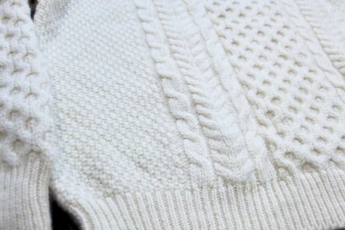 ケーブル編みが施された厚みのある柔らかいニットです。