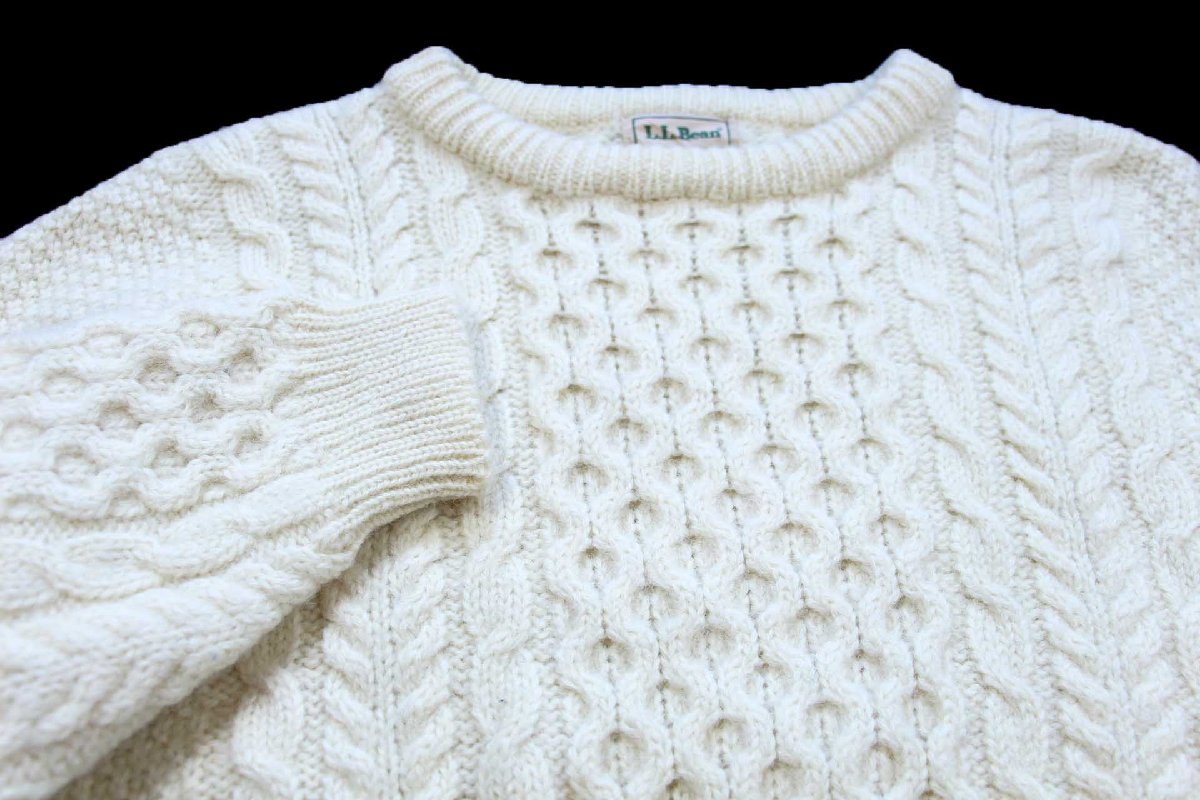 90s アイルランド製 L.L.Bean ケーブル編み ウールニット セーター ナチュラル XL★フィッシャーマン