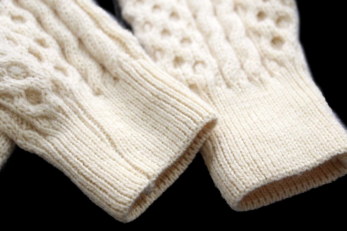 ケーブル編みが施された、やや厚みのある柔らかいニットです。