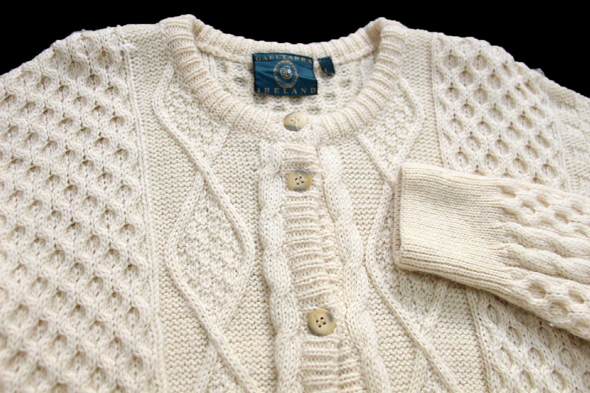アイルランド製 GAELTARRA ケーブル編み ウールニット カーディガン ナチュラル L★フィッシャーマン