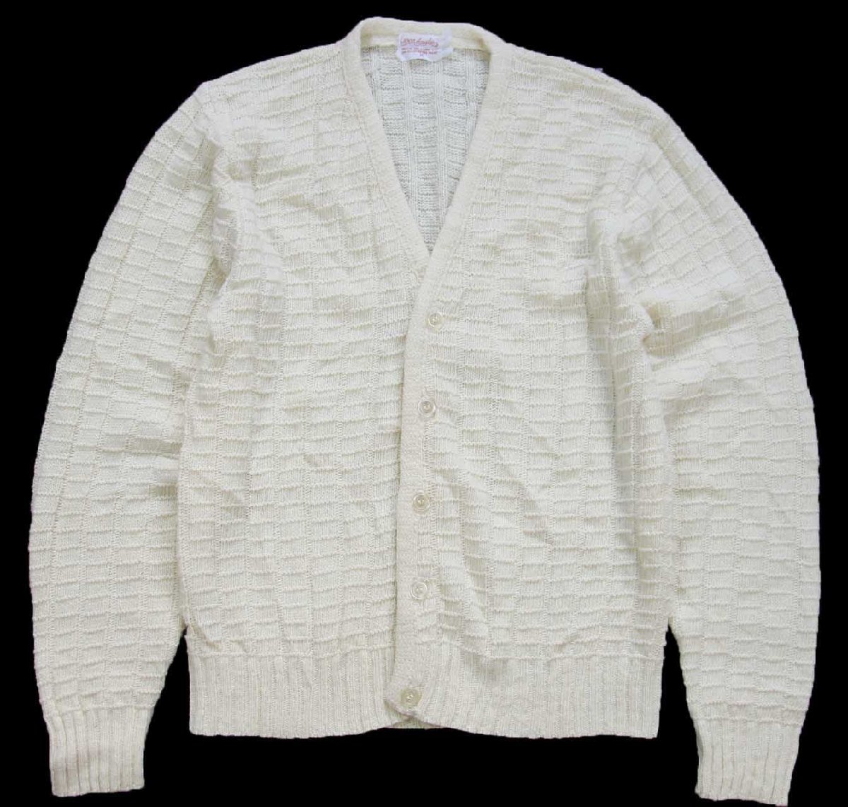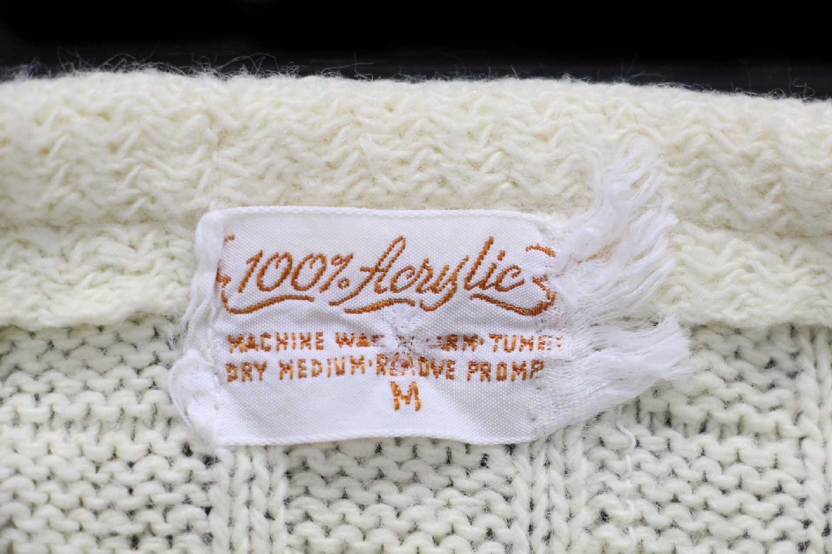 70s UNKNOWN 編み柄 アクリルニット カーディガン ナチュラル M