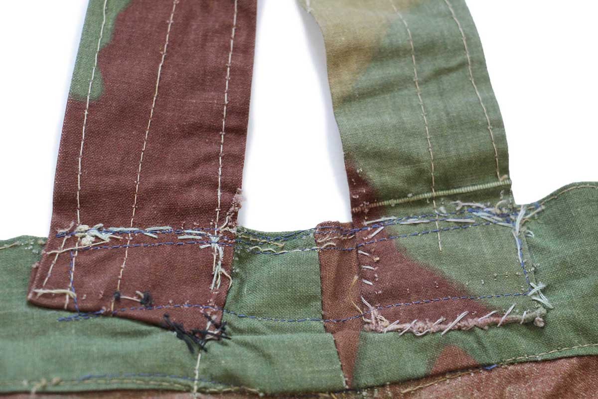 コンディション:着用感があり、所々に薄汚れや細かい汚れ、所々にステッチ抜け、フロントフライ下に1つの細かい小穴、ショルダーストラップ付け根にリペア、右カーゴポケットの内側スナップがボタンに交換されています(付け根に小穴があります)。致命的なダメージはなく、古着慣れされている方なら問題なく着用いただける程度です。