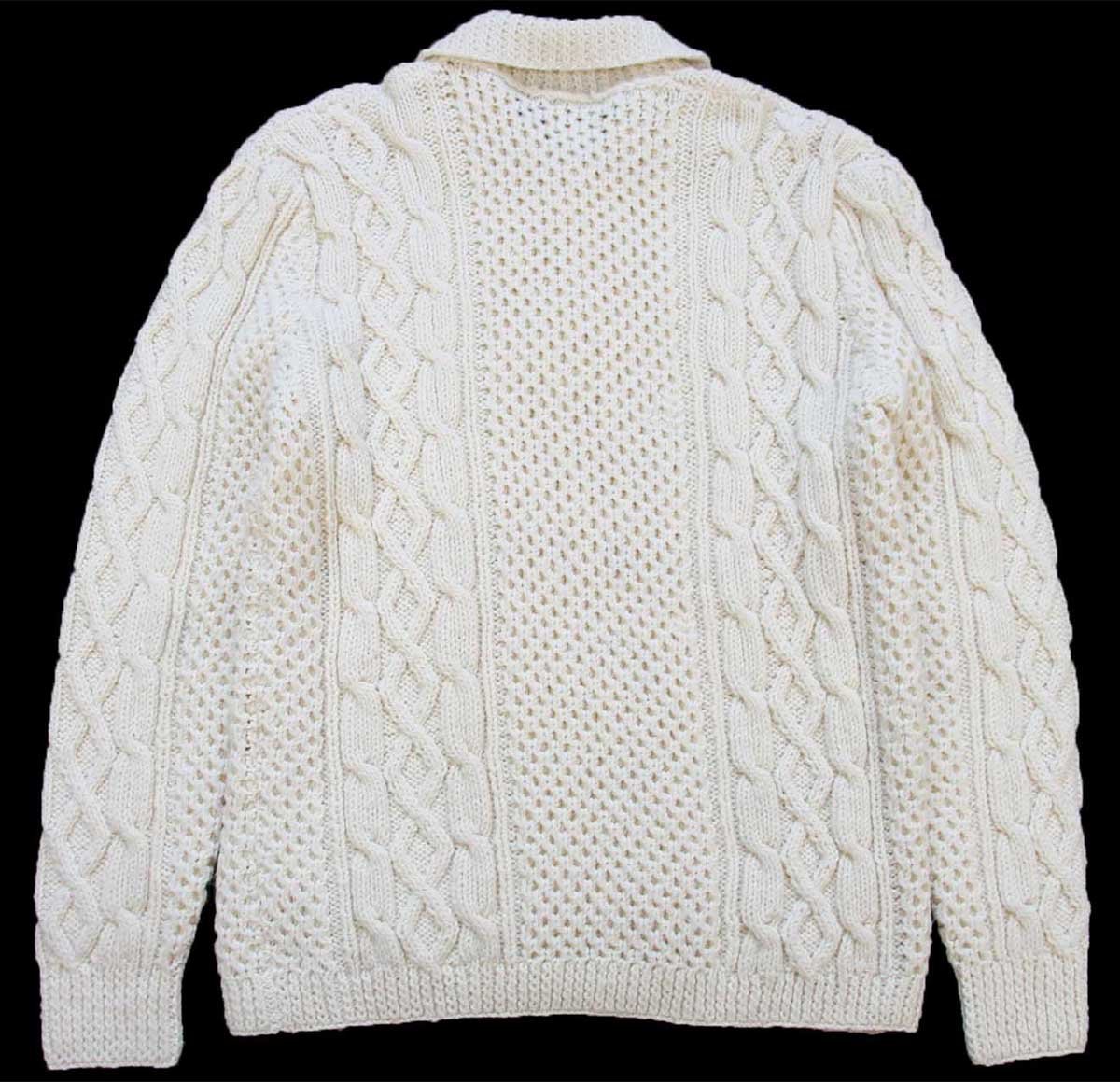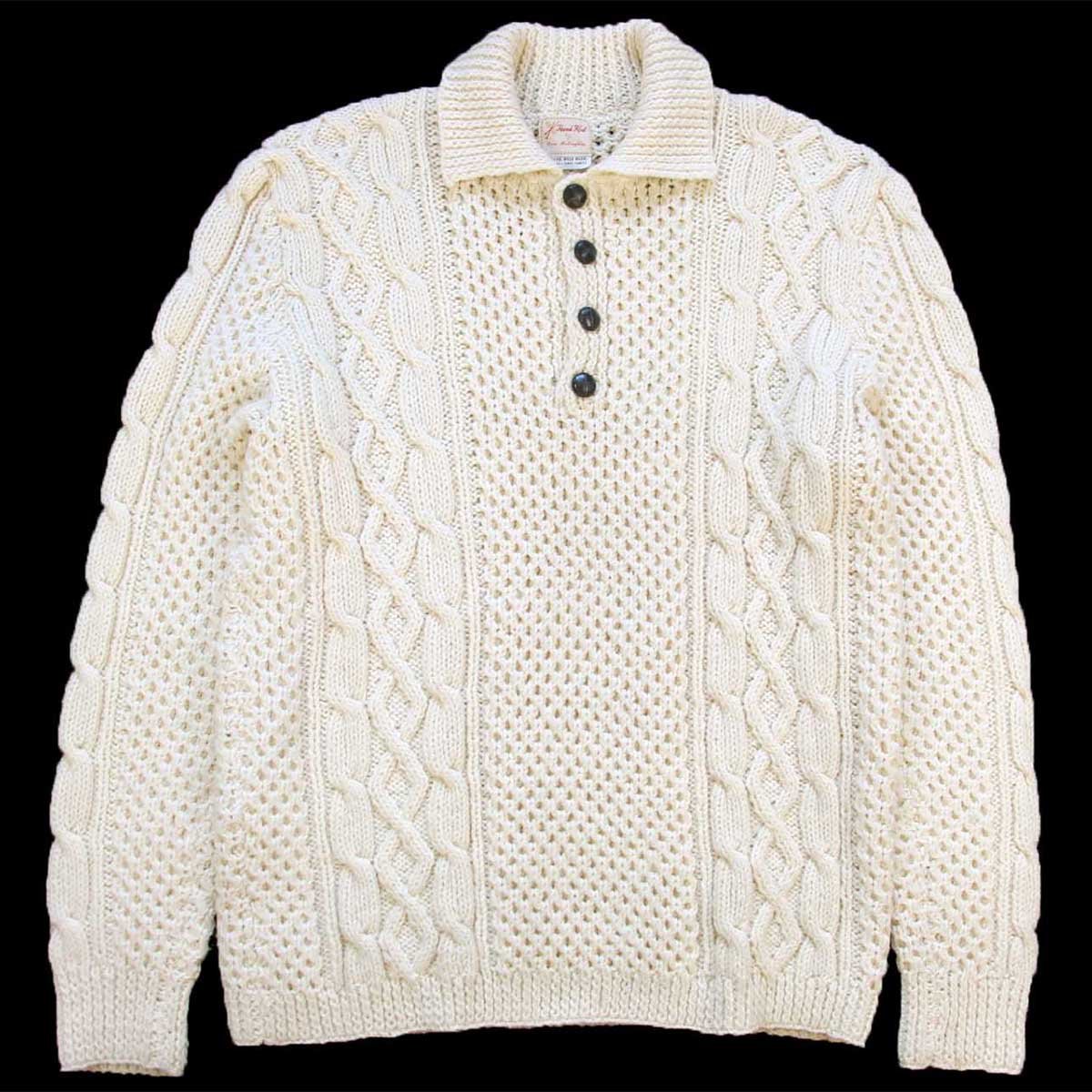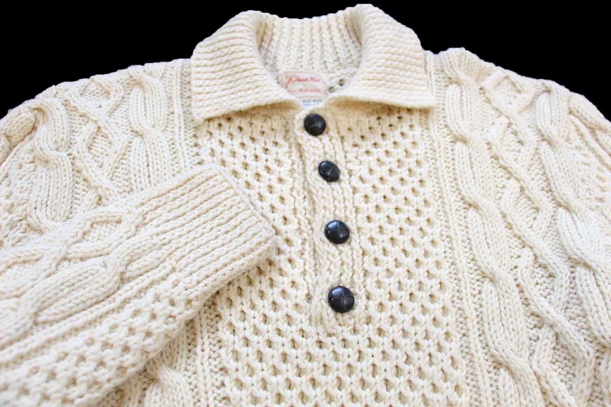 UNKNOWN 襟付き ケーブル編み ウール ハンドニット セーター ナチュラル★フィッシャーマン