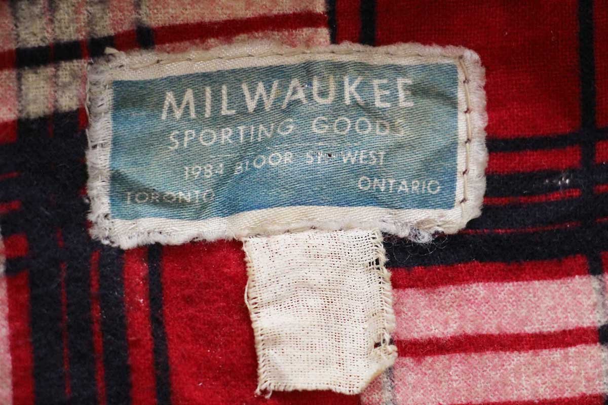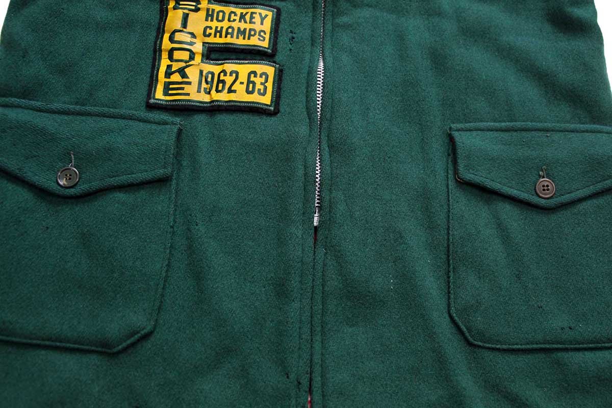 60s MILWAUKEE インディアン&フェルトパッチ付き プリントネルライナー メルトン ウールジャケット 緑