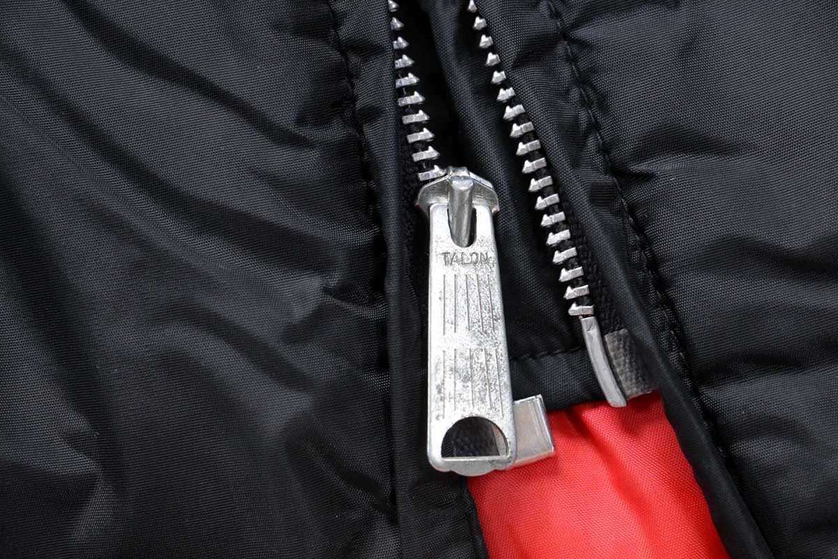 フロントTALONアルミジップ、薄中綿入りキルティングライナー、袖口内にリブあり、襟裏にフードを取り付けるジップあり(フードはありません)