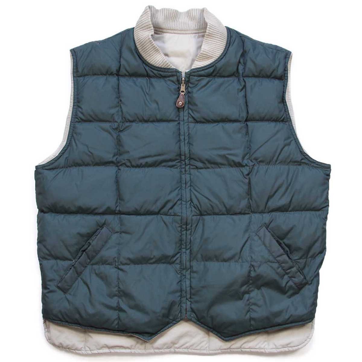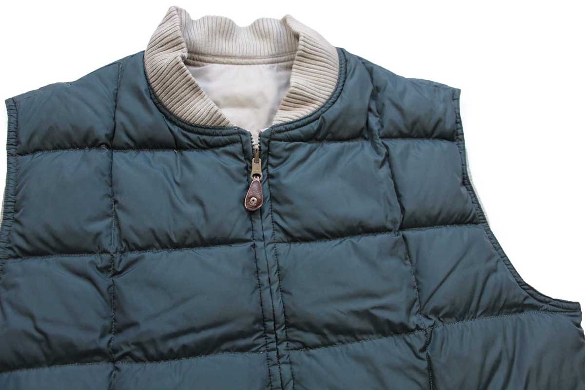 90s EddieBauerエディーバウアー リバーシブル ダウンベスト 深緑×グレーベージュ L