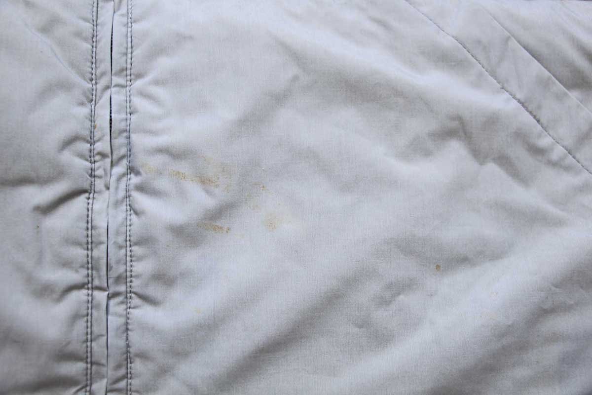 コンディション:着用感があり、ネックリブに若干の波打ち、グレーベージュ側のフロント下部に多少の汚れがあります。目立つダメージや酷い汚れはなく、問題なく着用いただける程度です。